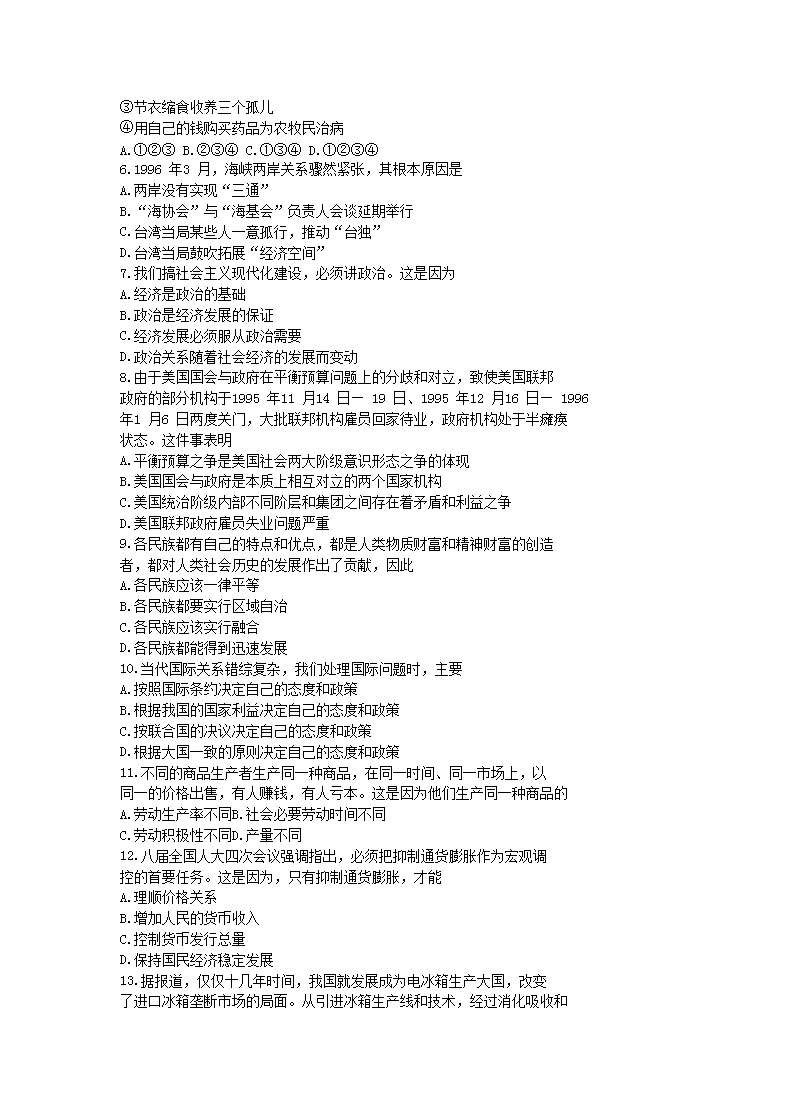 【文檔名稱】 1996年上海高考政治真題及答案(Word版).doc