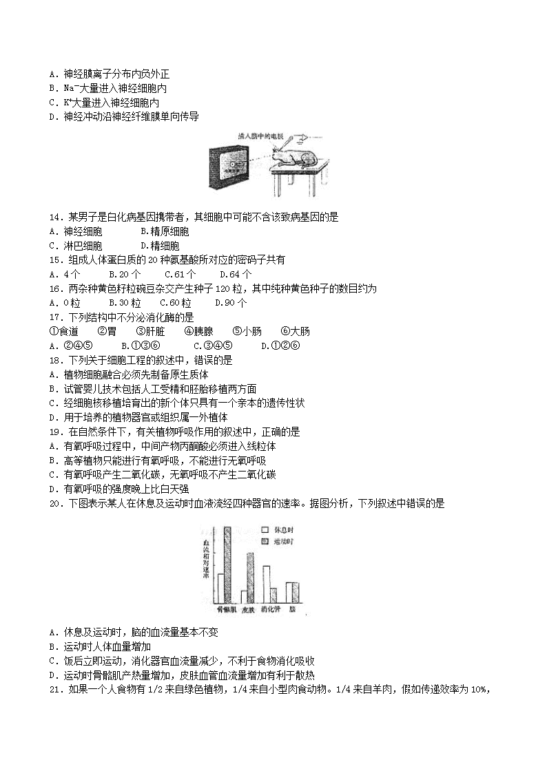 【文檔名稱】 2004年上海高考生物真題及答案(Word版).doc