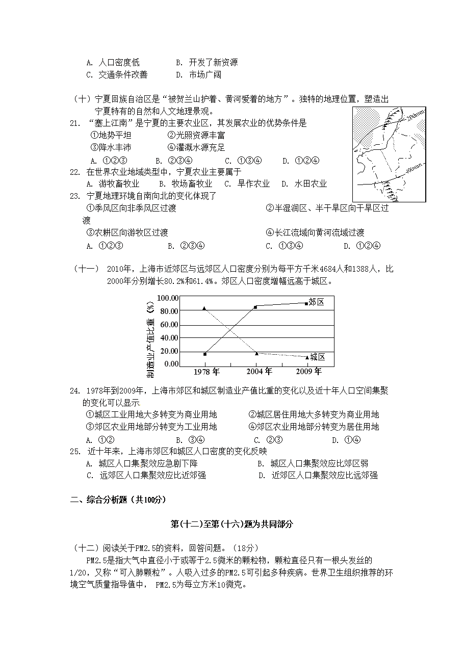 【文檔名稱】 2012年上海高考地理試題及答案(Word版).doc