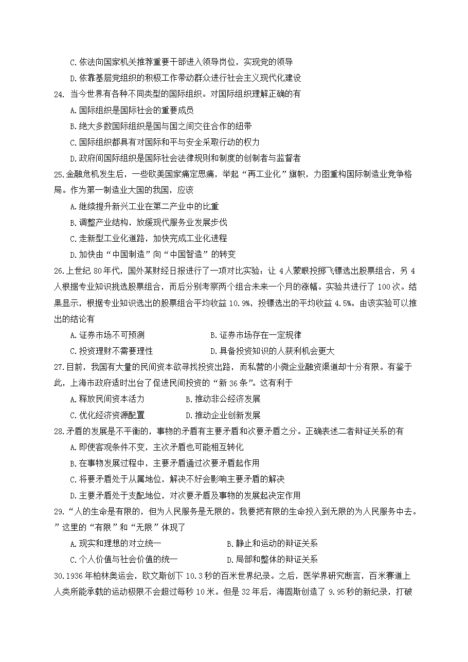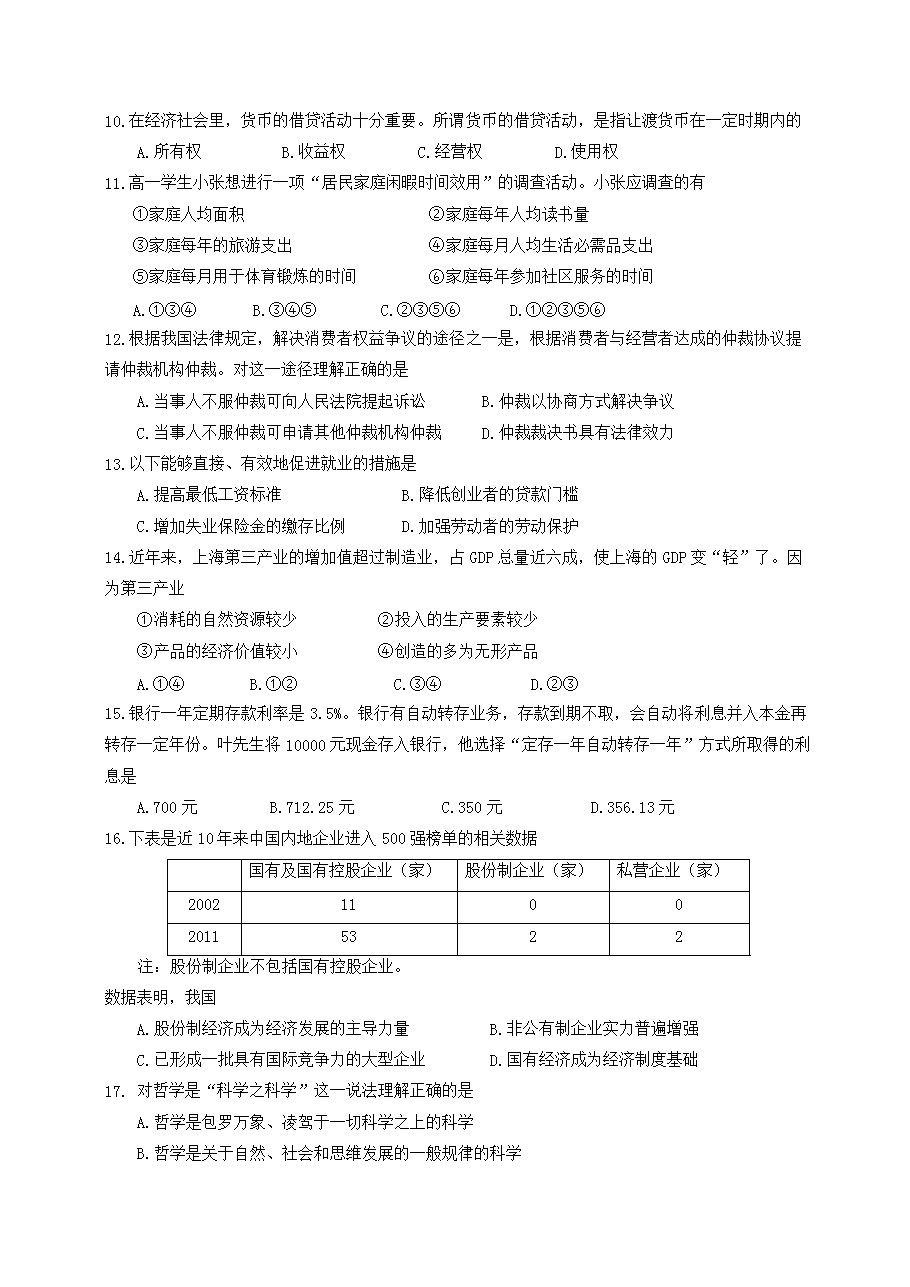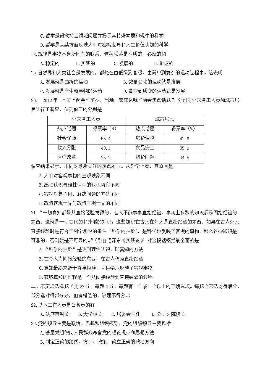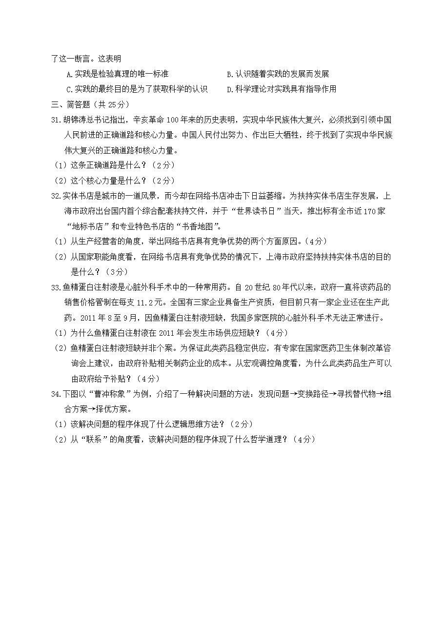 【文檔名稱】 2012年上海高考政治試題及答案(Word版).doc