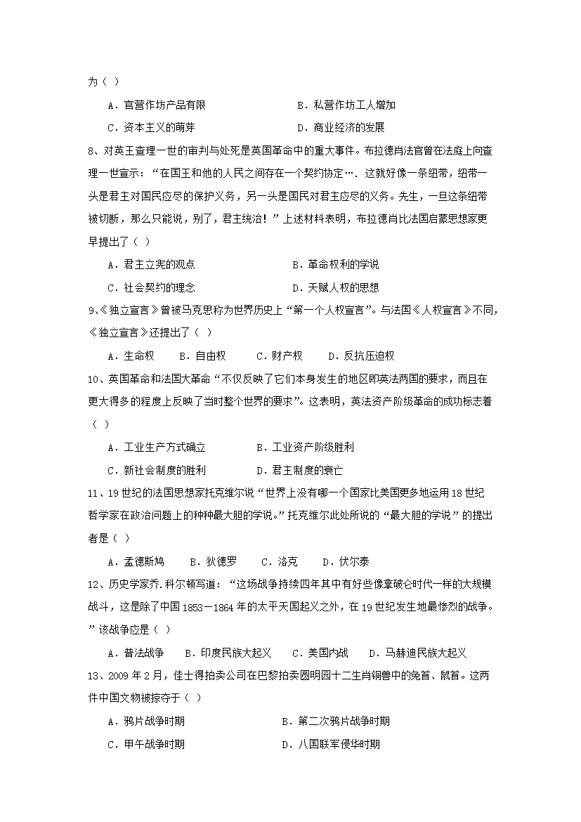 【文檔名稱】 2009年海南高考?xì)v史試題及答案(Word版).doc