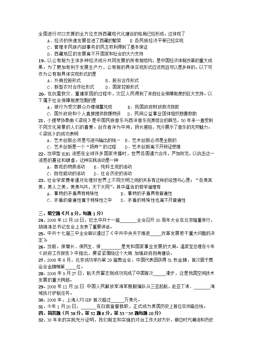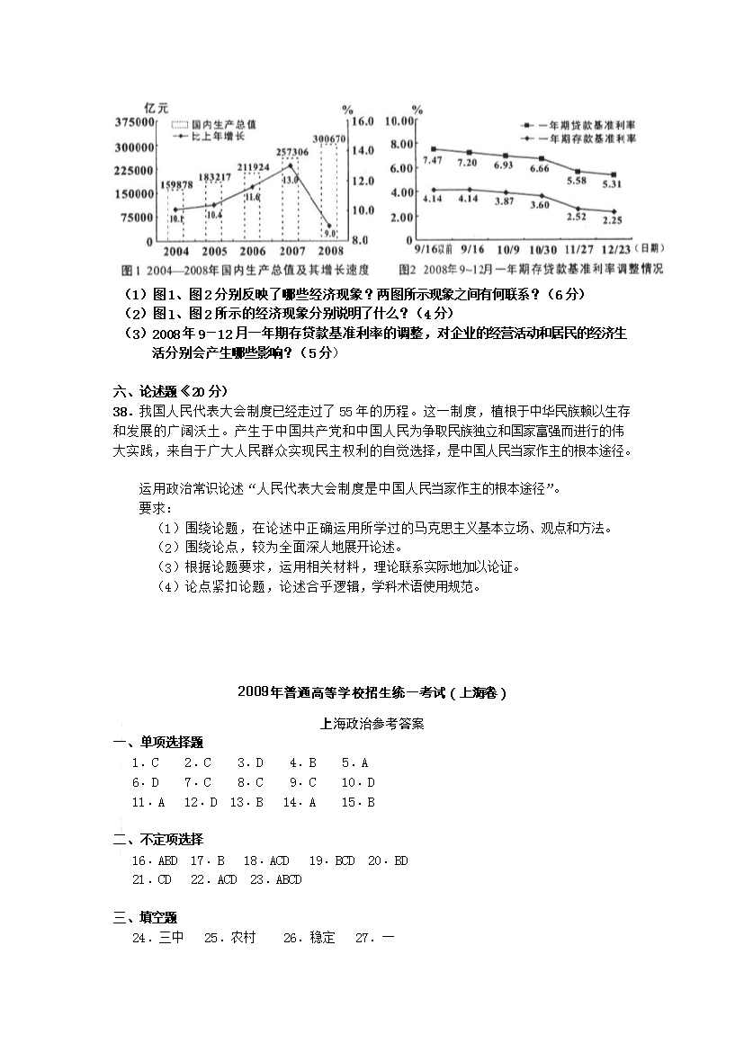 【文檔名稱】 2009年上海高考政治試題及答案(Word版).doc