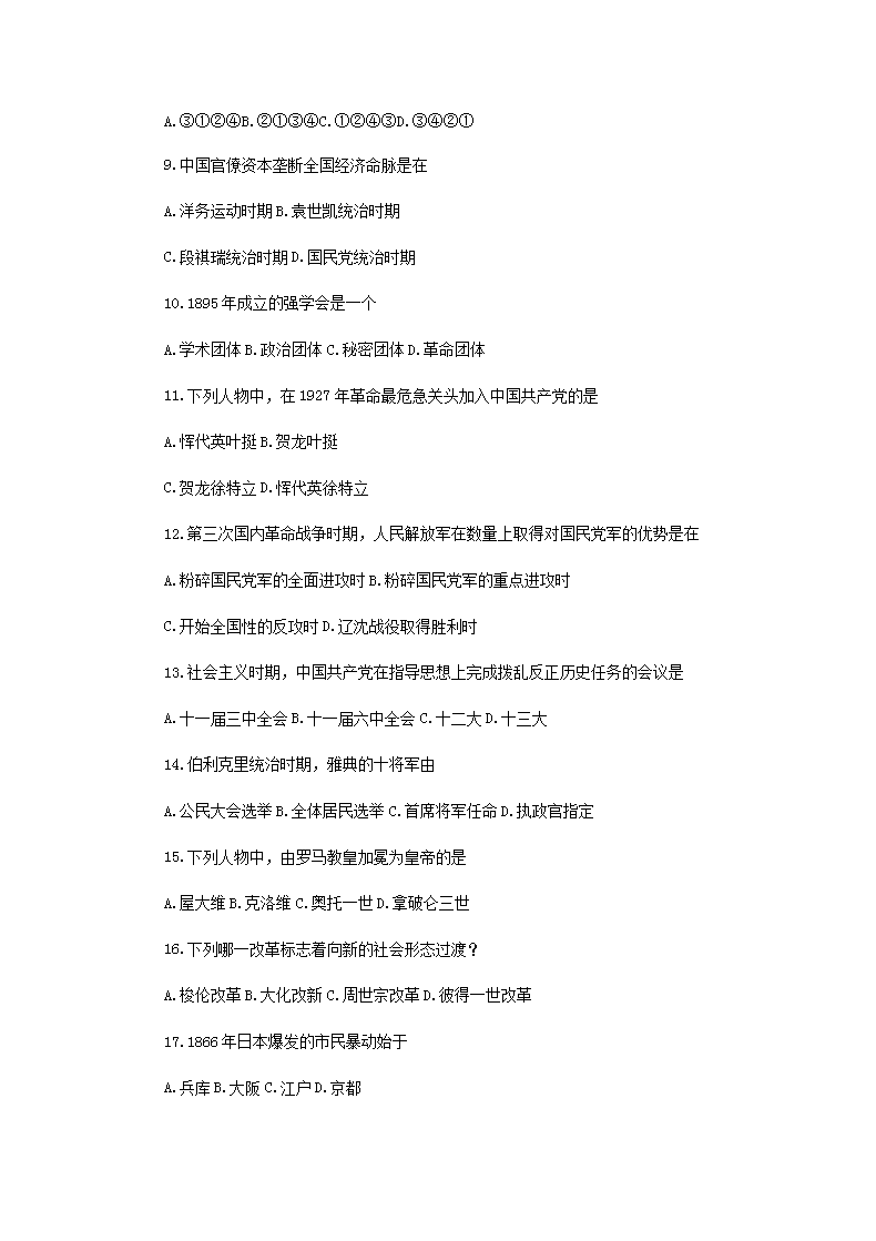 【文檔名稱】 1992年上海高考?xì)v史真題及答案(Word版).doc