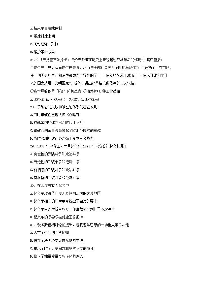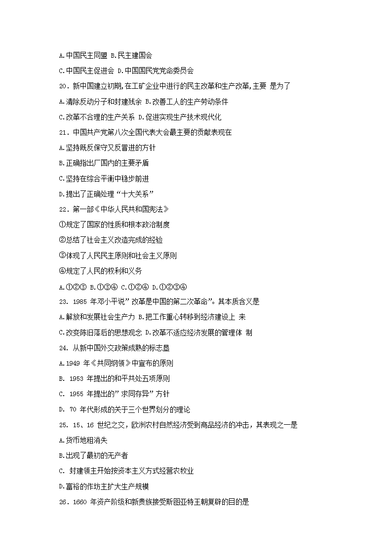 【文檔名稱】 1999年江蘇高考?xì)v史真題及答案(Word版).doc