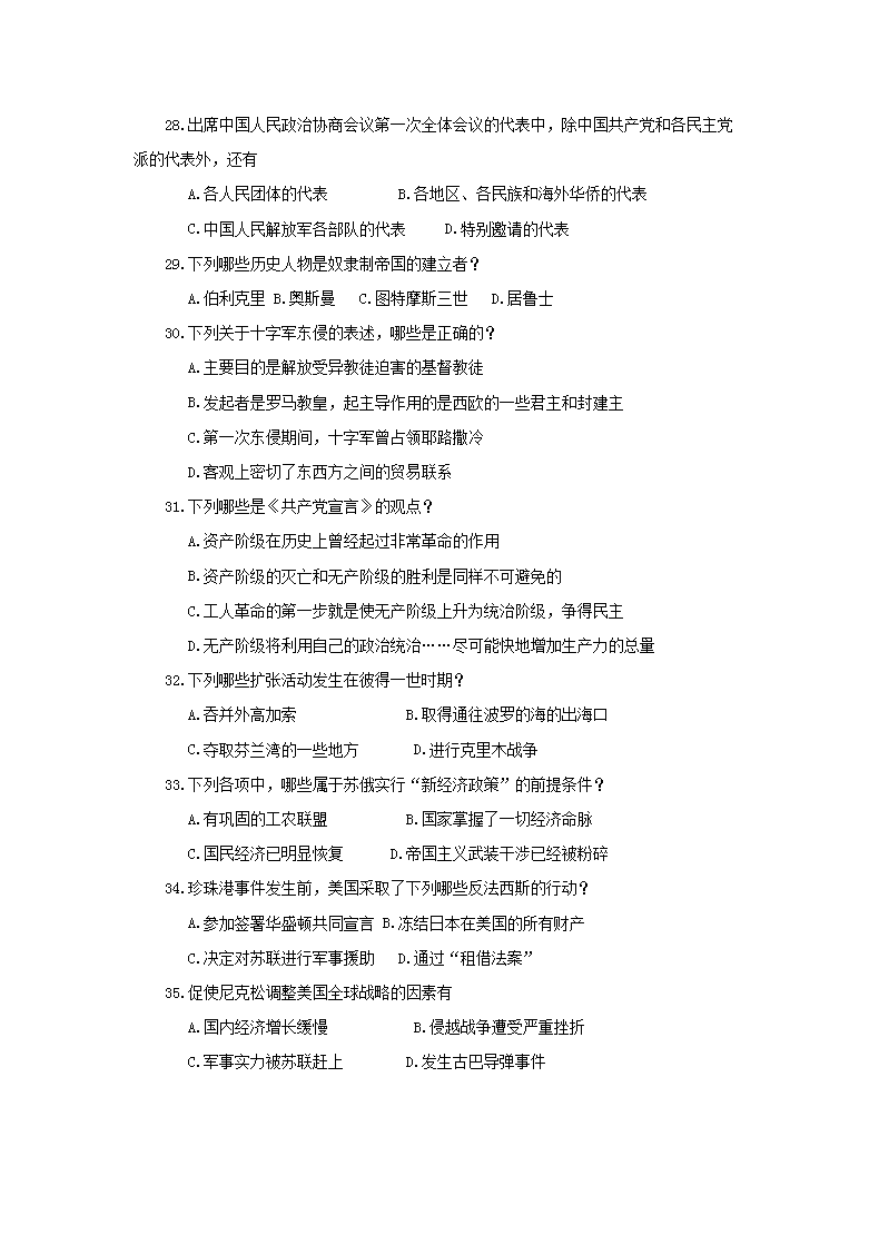 【文檔名稱】 1991年海南高考歷史真題及答案(Word版).doc