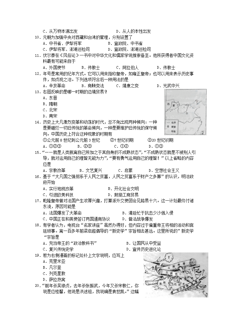 【文檔名稱】 2010年上海高考?xì)v史真題及答案(Word版).doc