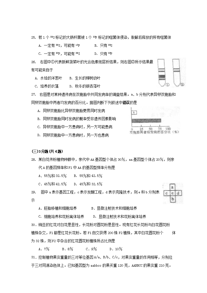【文檔名稱】 2010年上海高考生物真題及答案(Word版).doc