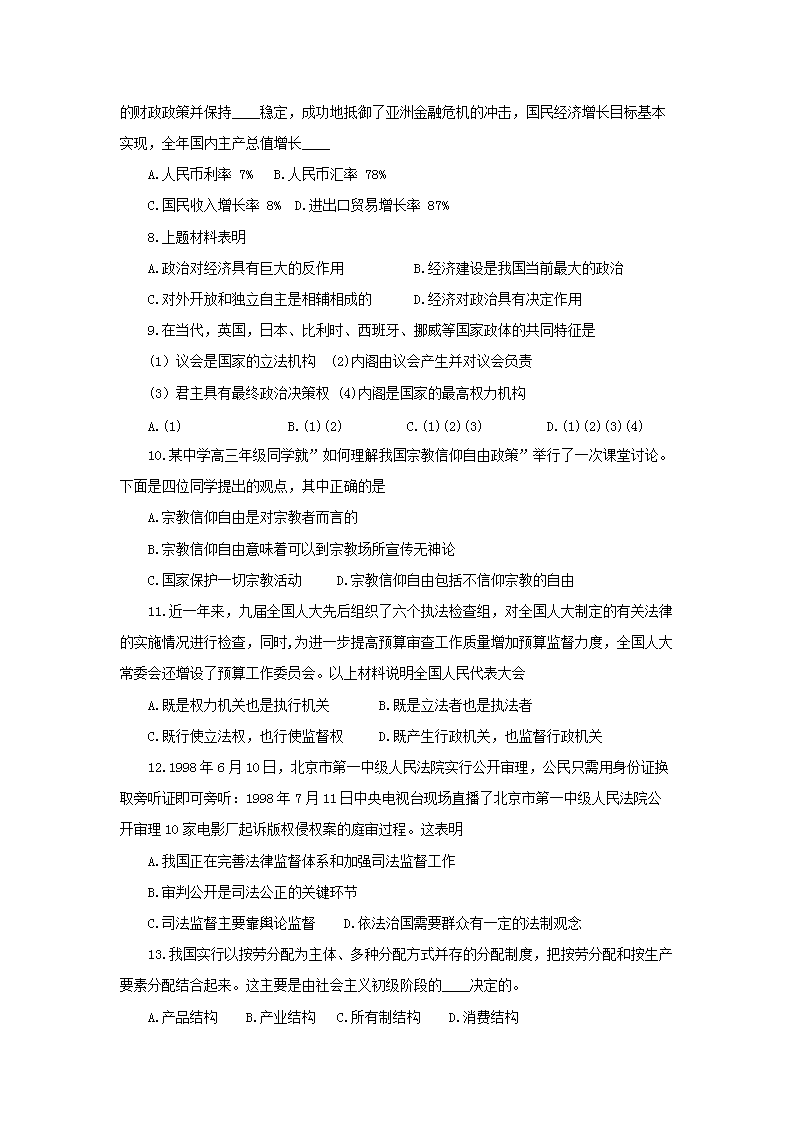 【文檔名稱】 1999年海南高考政治真題及答案(Word版).doc