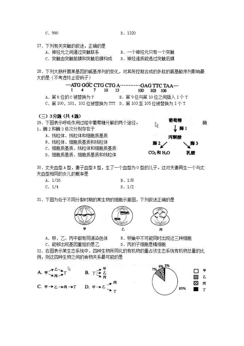 【文檔名稱】 2008年上海高考生物真題及答案(Word版).doc
