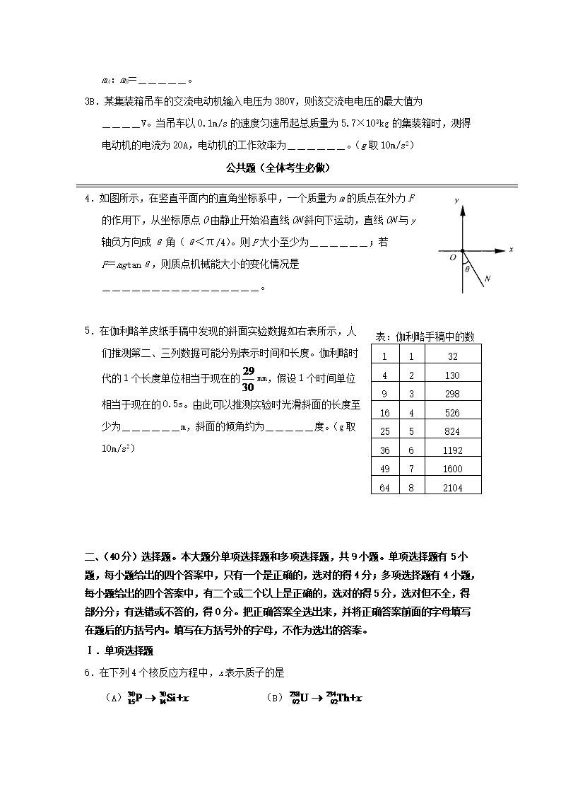 【文檔名稱】 2008年上海高考物理真題及答案(Word版).doc