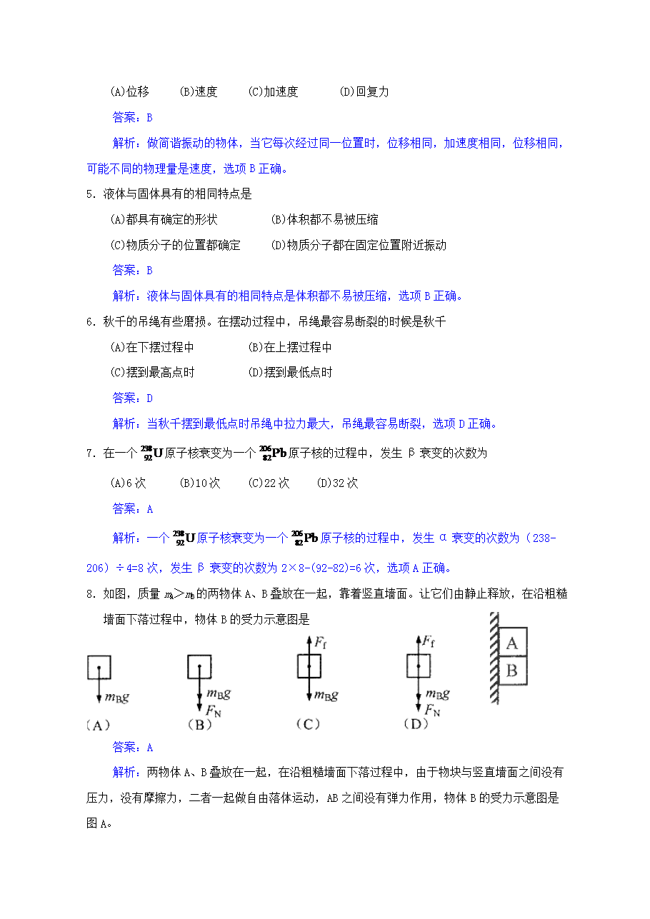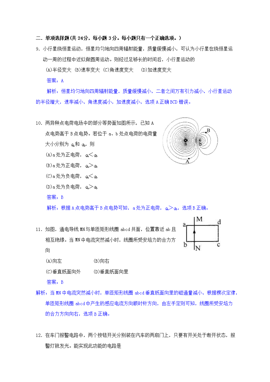 【文檔名稱】 2013年上海高考物理試題及答案(Word版).doc