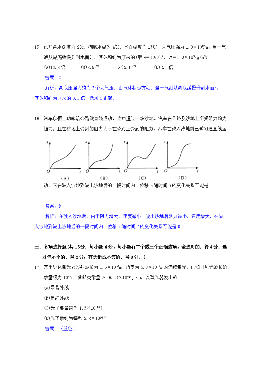 【文檔預覽】 無憂考網整理發(fā)布2013年上海高考物理試題及答案(Word版),前五頁預覽如下:
