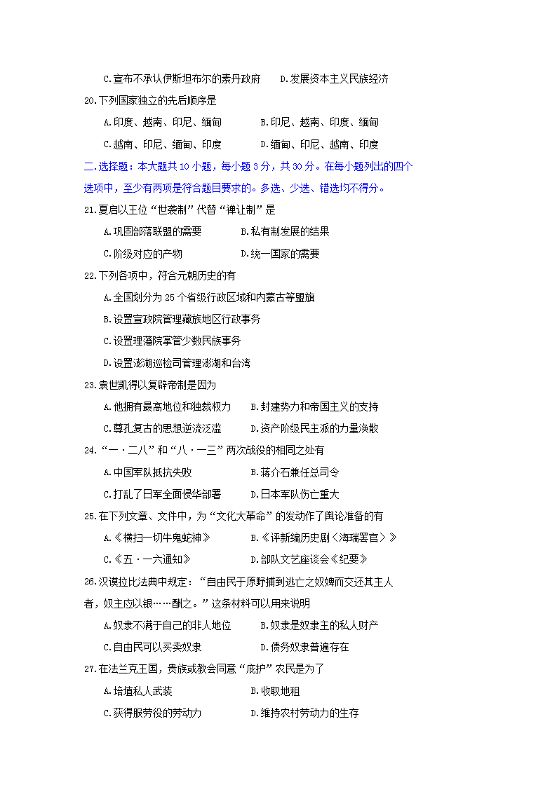 【文檔名稱(chēng)】 1994年上海高考?xì)v史真題及答案(Word版).doc