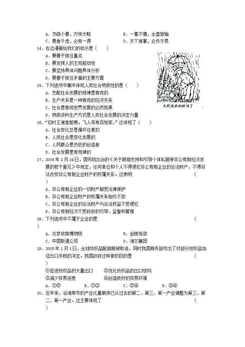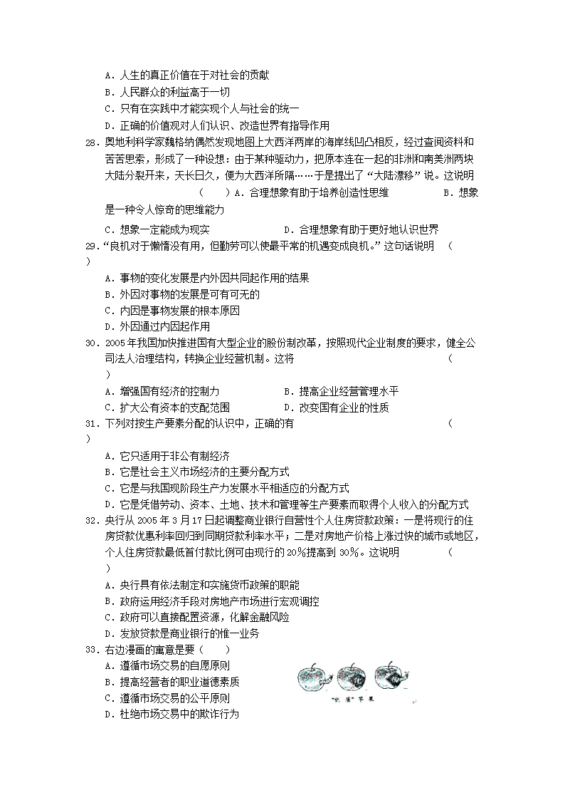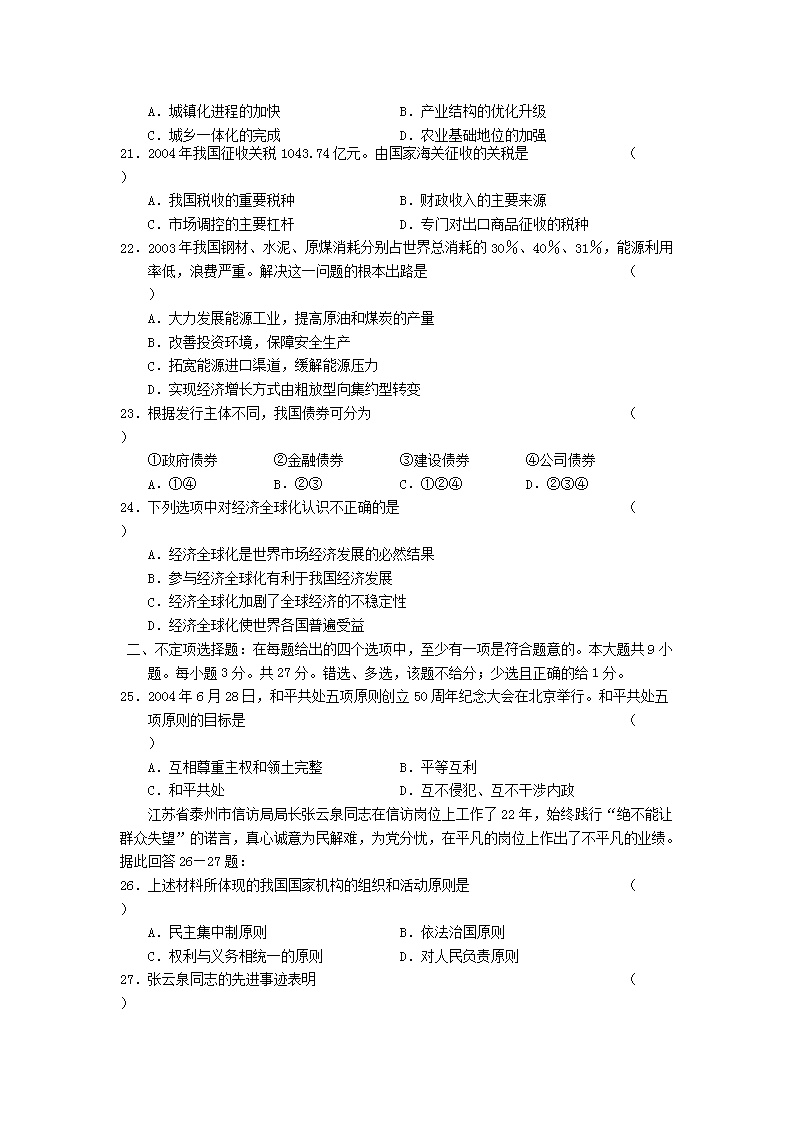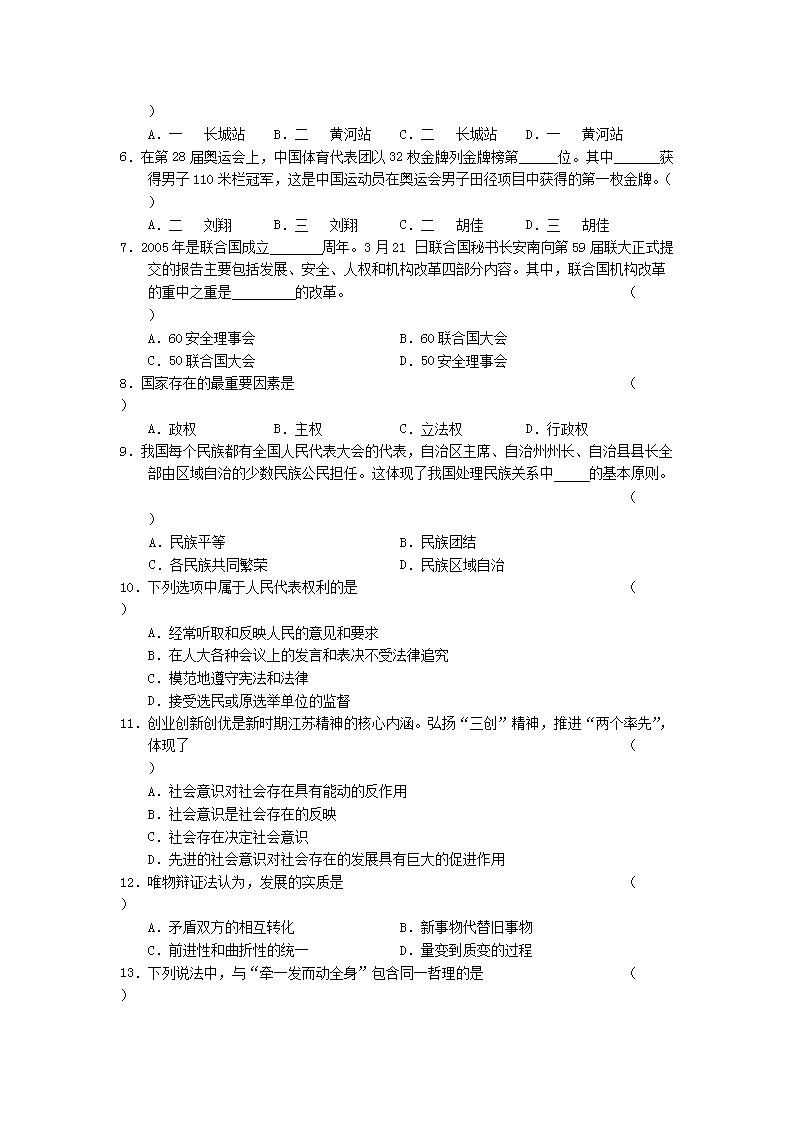 【文檔名稱】 2005年江蘇高考政治真題及答案(Word版).doc