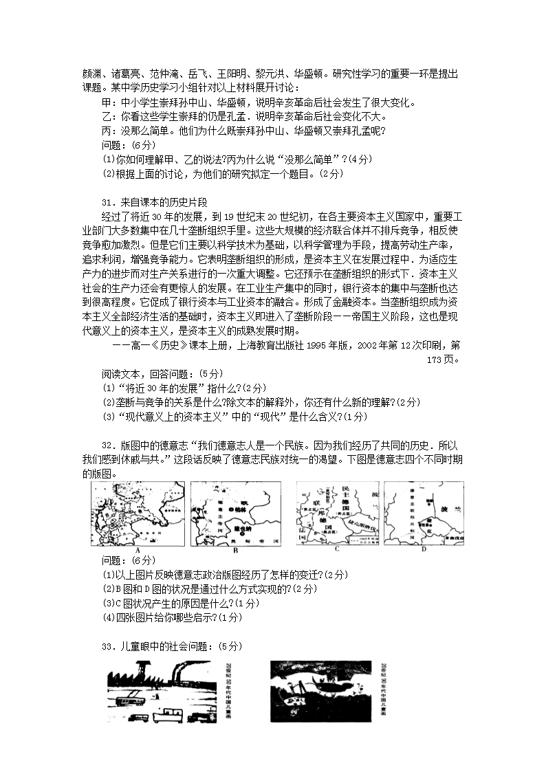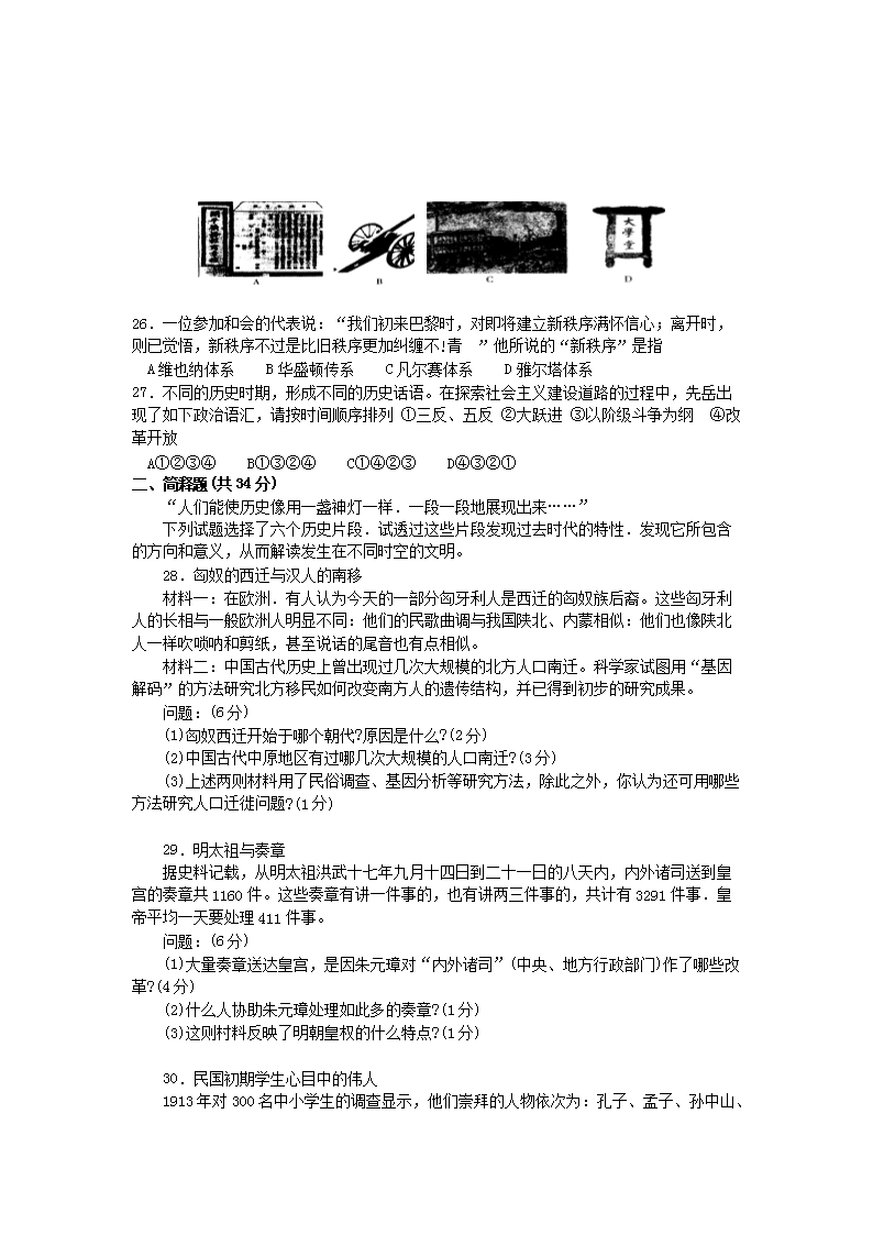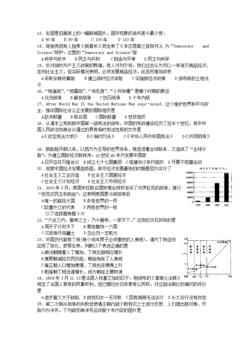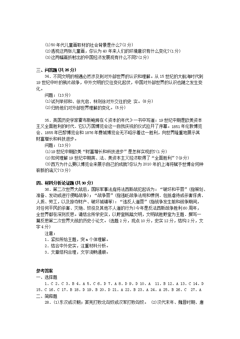 【文檔名稱】 2005年上海高考?xì)v史真題及答案(Word版).doc