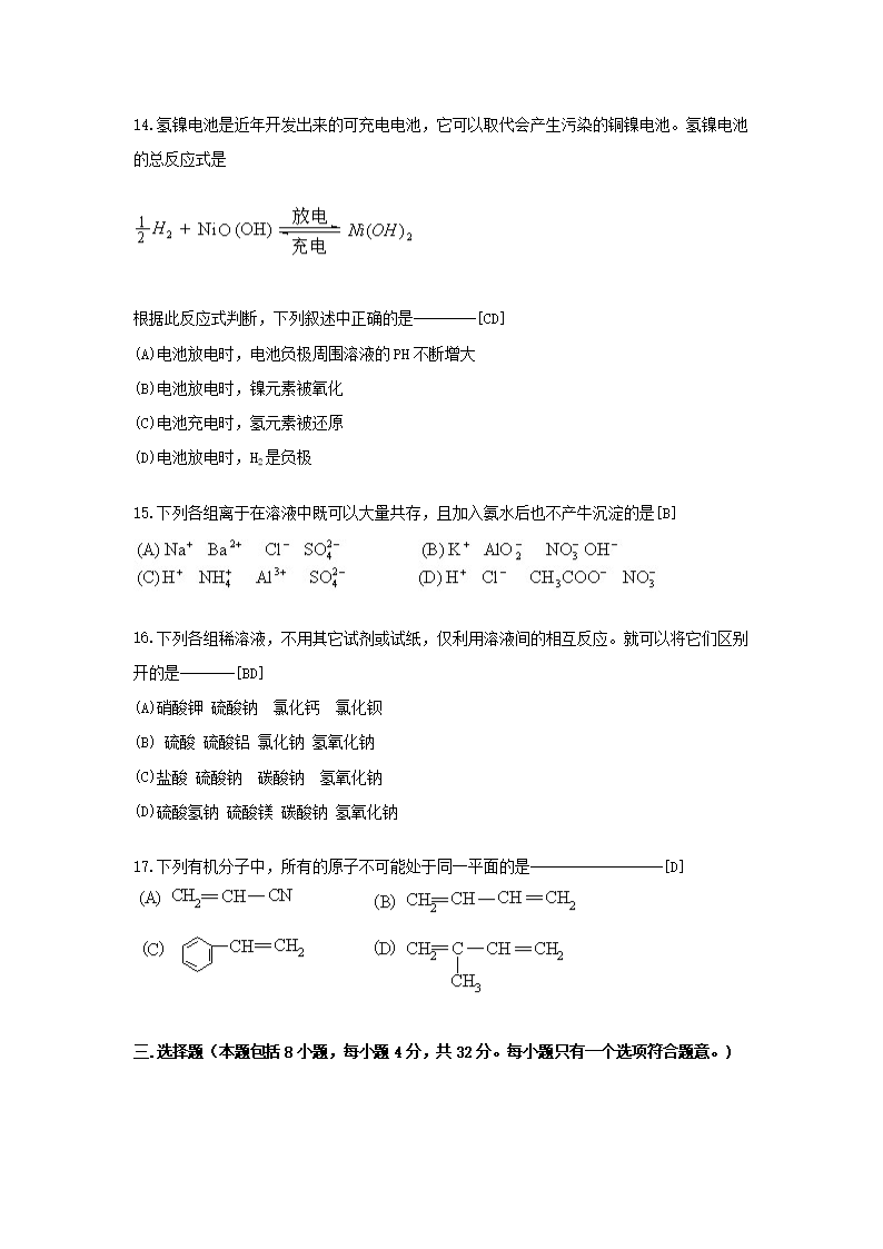 【文檔預(yù)覽】 無憂考網(wǎng)整理發(fā)布1999年江蘇高考化學(xué)真題及答案(Word版),前五頁預(yù)覽如下: