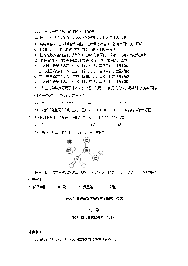【文檔名稱】 2000年海南高考化學真題及答案(Word版).doc