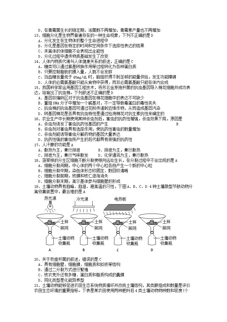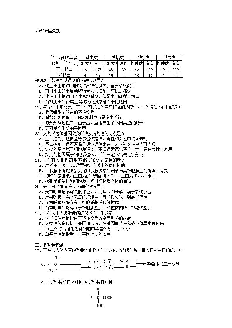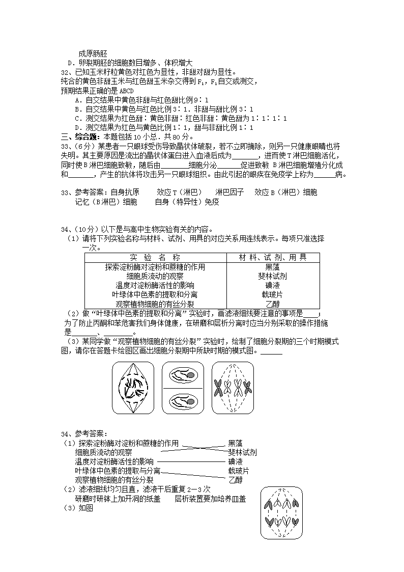 【文檔名稱】 2006年江蘇高考生物真題及答案(Word版).doc