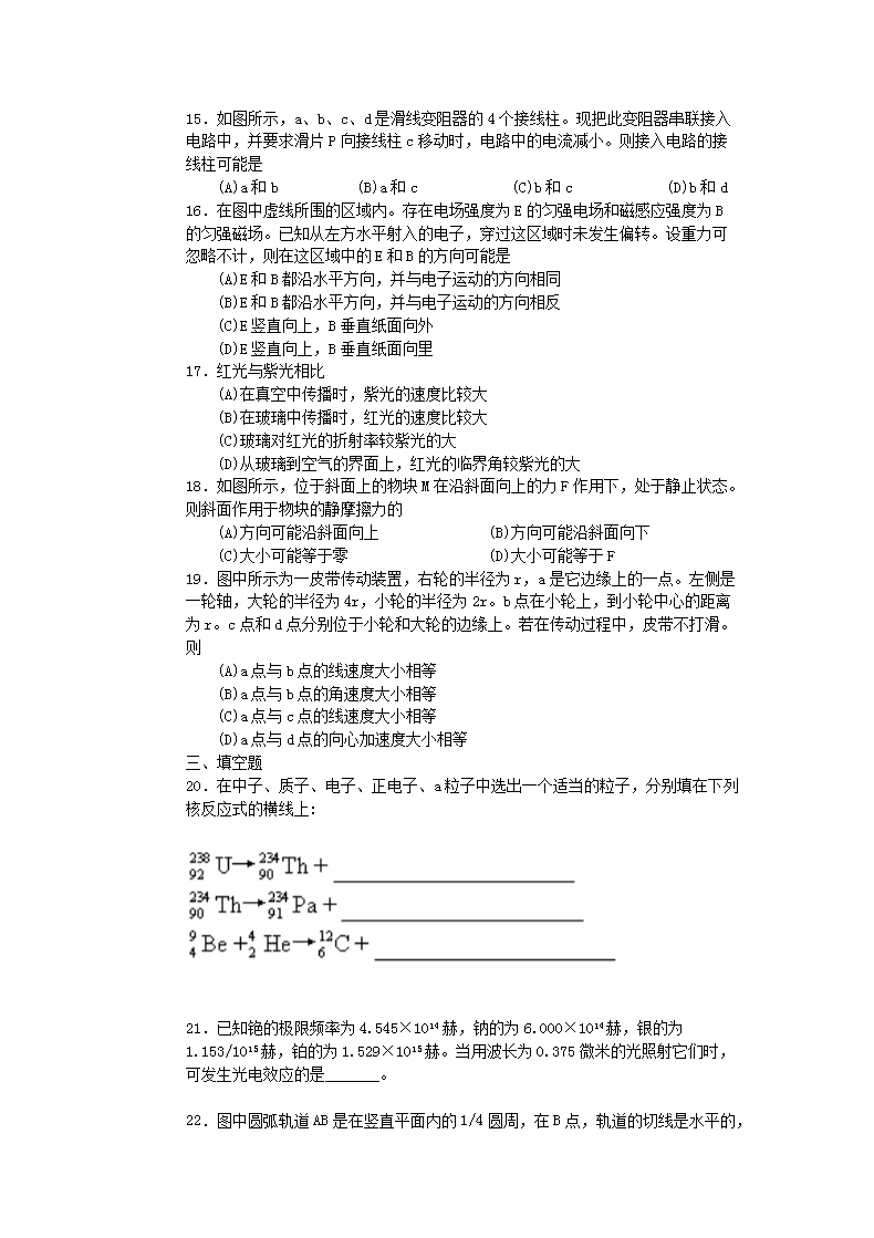 【文檔名稱】 1992年上海高考物理真題及答案(Word版).doc