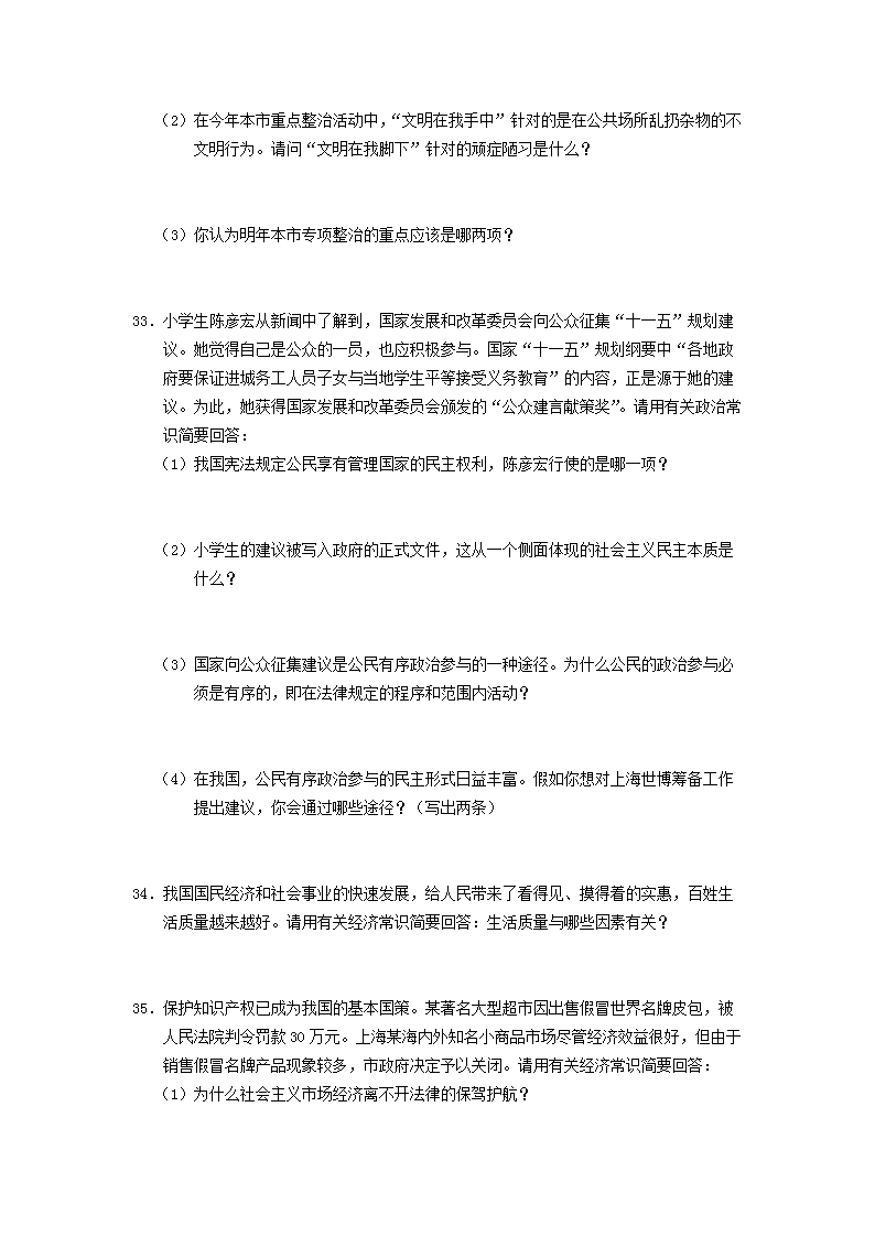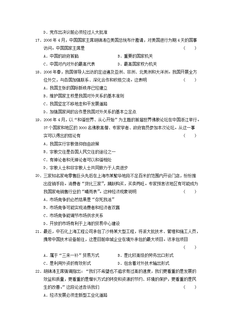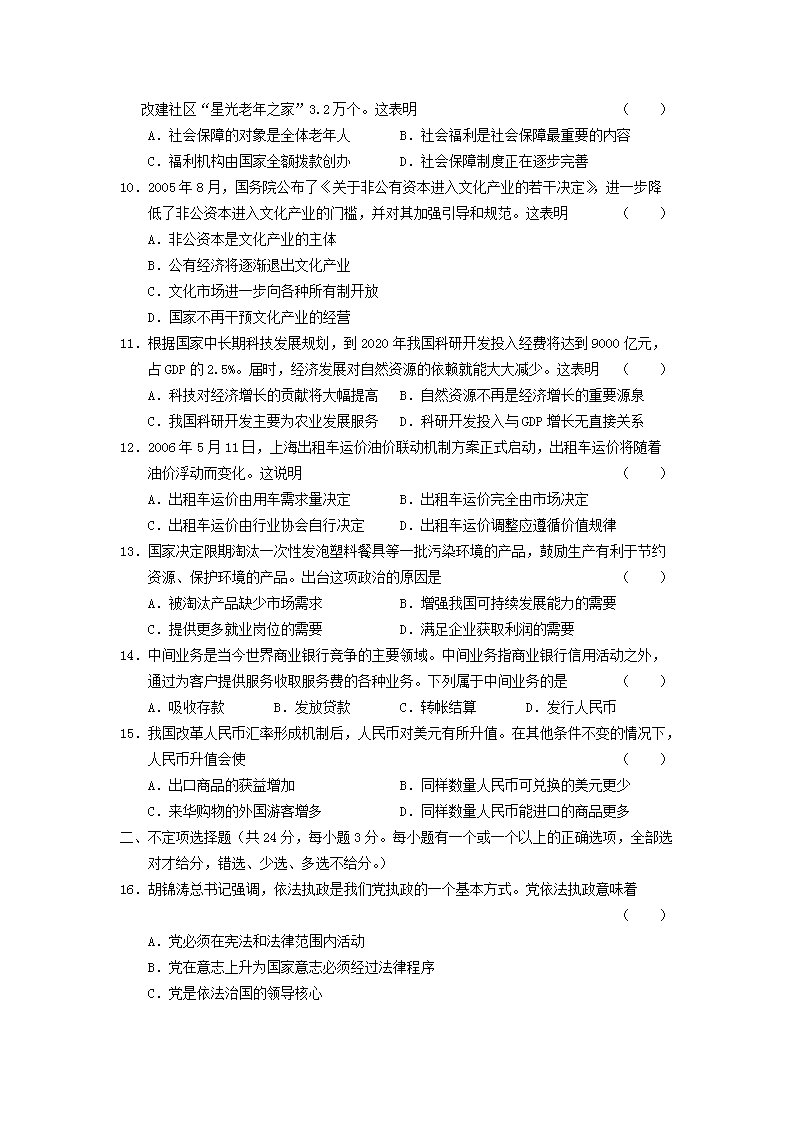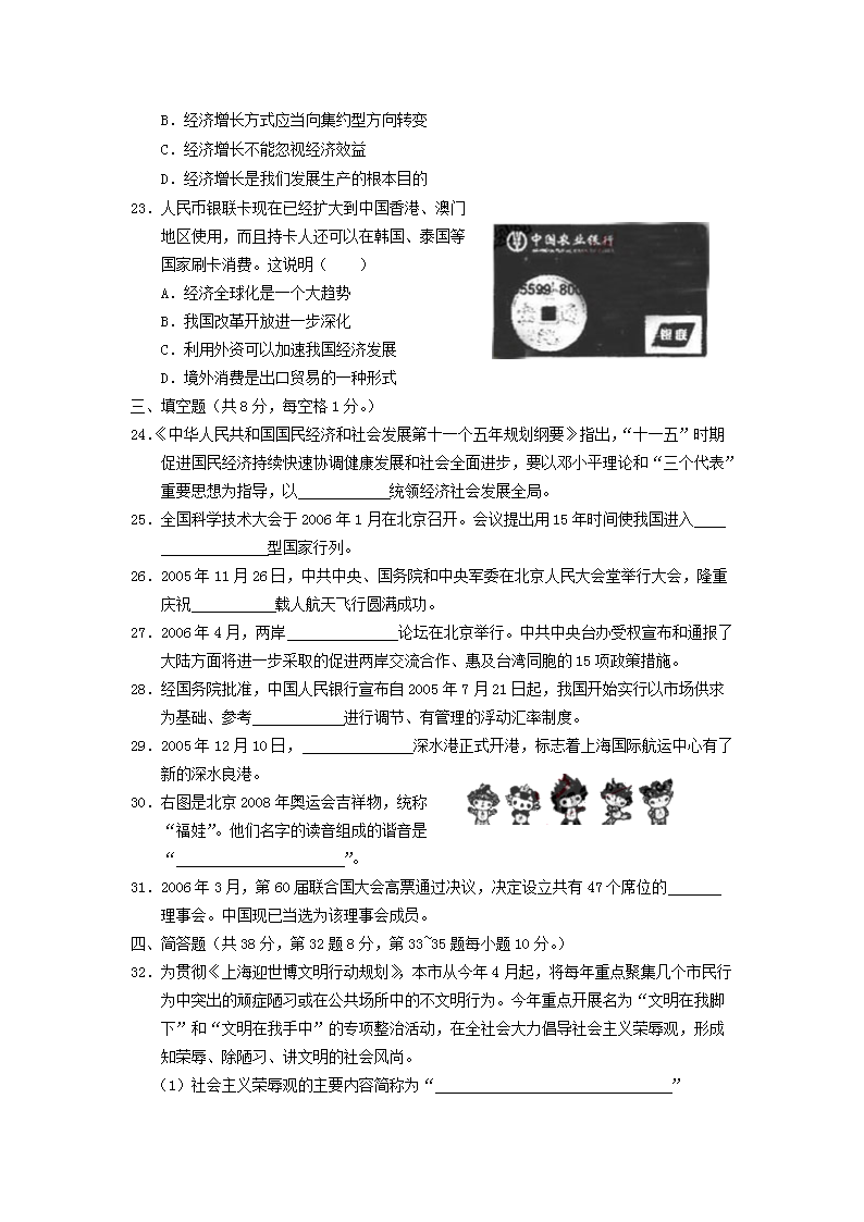 【文檔名稱】 2006年上海高考政治真題及答案(Word版).doc