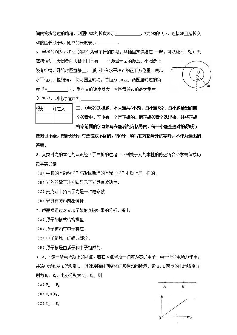 【文檔名稱】 2006年上海高考物理真題及答案(Word版).doc
