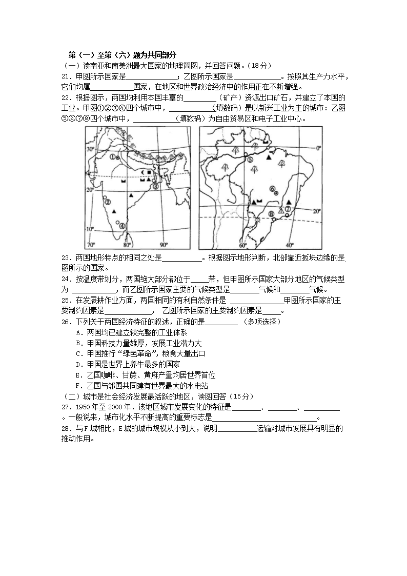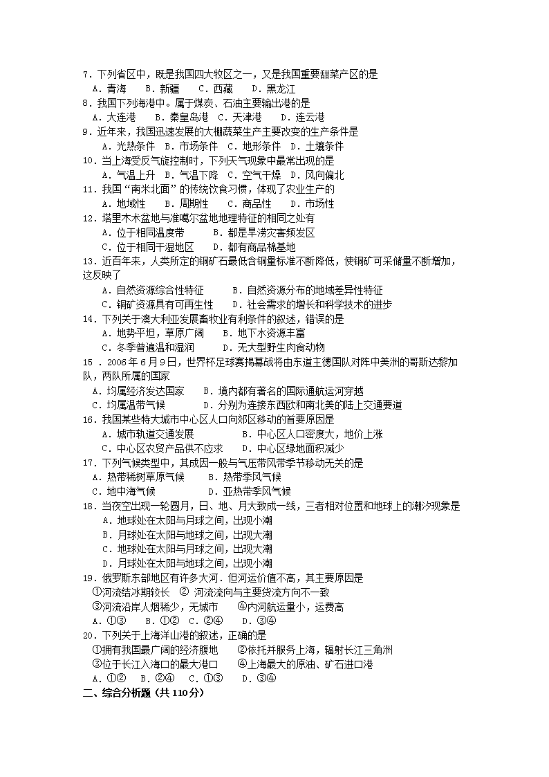 【文檔名稱】 2006年上海高考地理真題及答案(Word版).doc