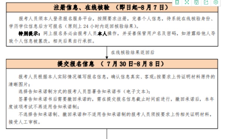 (一)本項考試報名證明事項推行告知制。報考人員須確定本人符合報名條件,填報的信息均真實、客觀,并簽署《專業(yè)技術人員資格考試報名證明事項告知制告知書》(電子文本),切勿委托他人或機構填寫報名信息、代替本人作出書面(含電子文本)。考試組織機構將在考前、考中、考后對報考人員的內容開展核查,成績合格擬取得資格證書人員信息將在網(wǎng)站進行公示,接受社會監(jiān)督。不實填報、虛假的人員將被記入專業(yè)技術人員資格考試誠信檔案庫,納入全國信用信息共享平臺,接受“一處失信、處處受限”的聯(lián)合懲戒處罰,涉嫌犯罪的,移送司法機關處理。