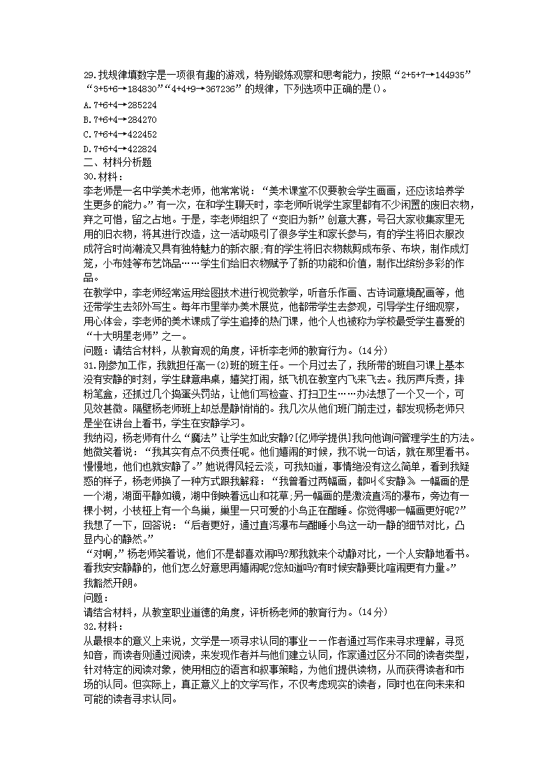 - 查看教師資格考試全部真題>>