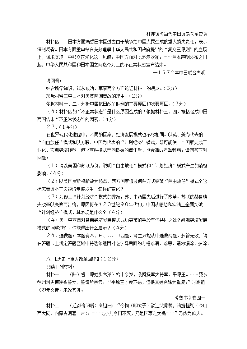 【文檔名稱】 2008年江蘇高考歷史真題及答案(Word版).doc