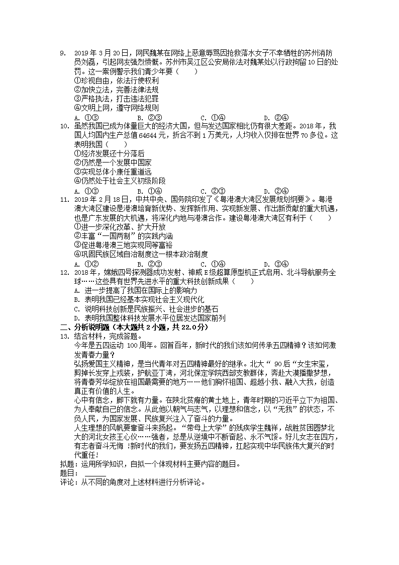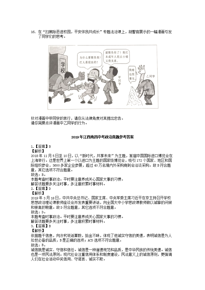 【文檔名稱】 2019年江西南昌中考政治真題及答案(Word版).doc