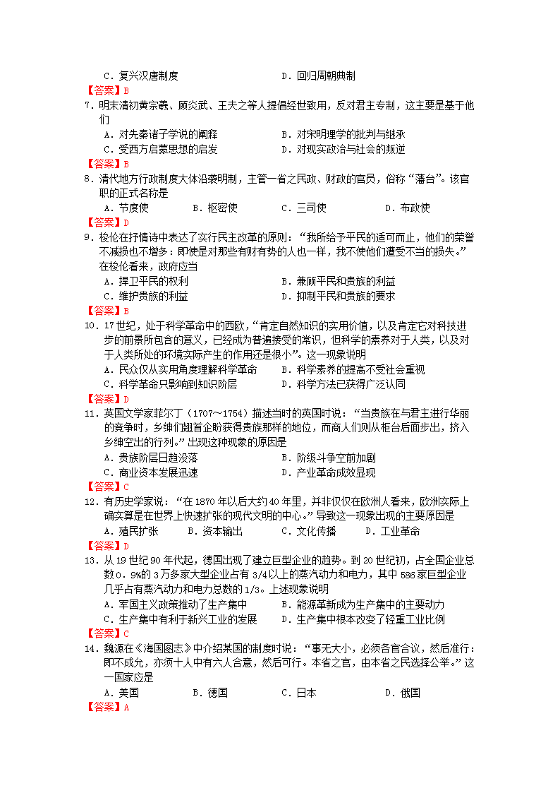 【文檔名稱】 2011年海南高考?xì)v史真題及答案(Word版).doc