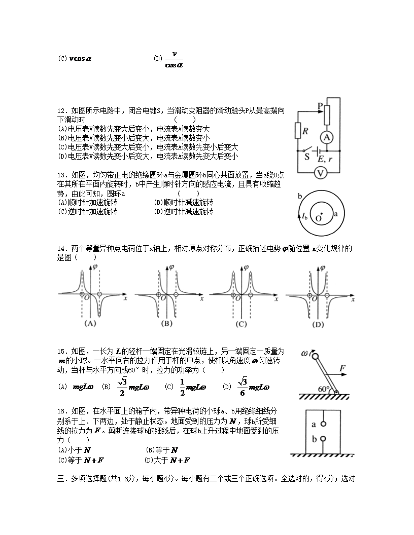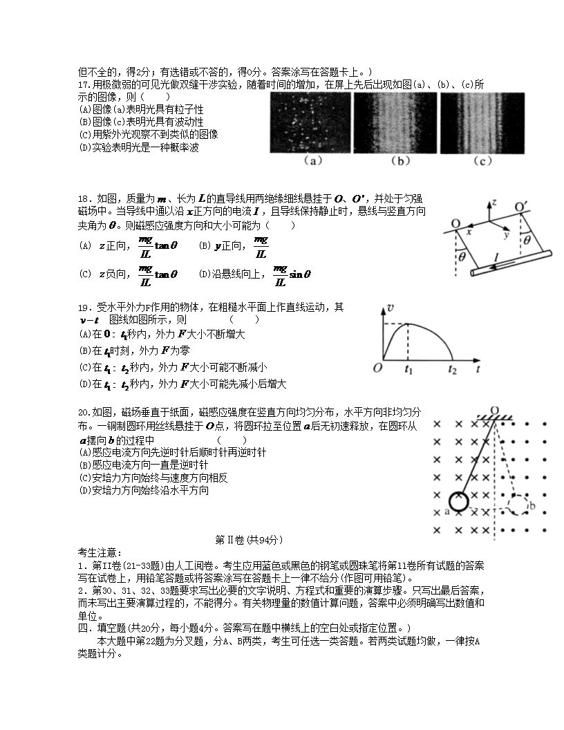 【文檔名稱】 2011年上海高考物理真題及答案(Word版).doc