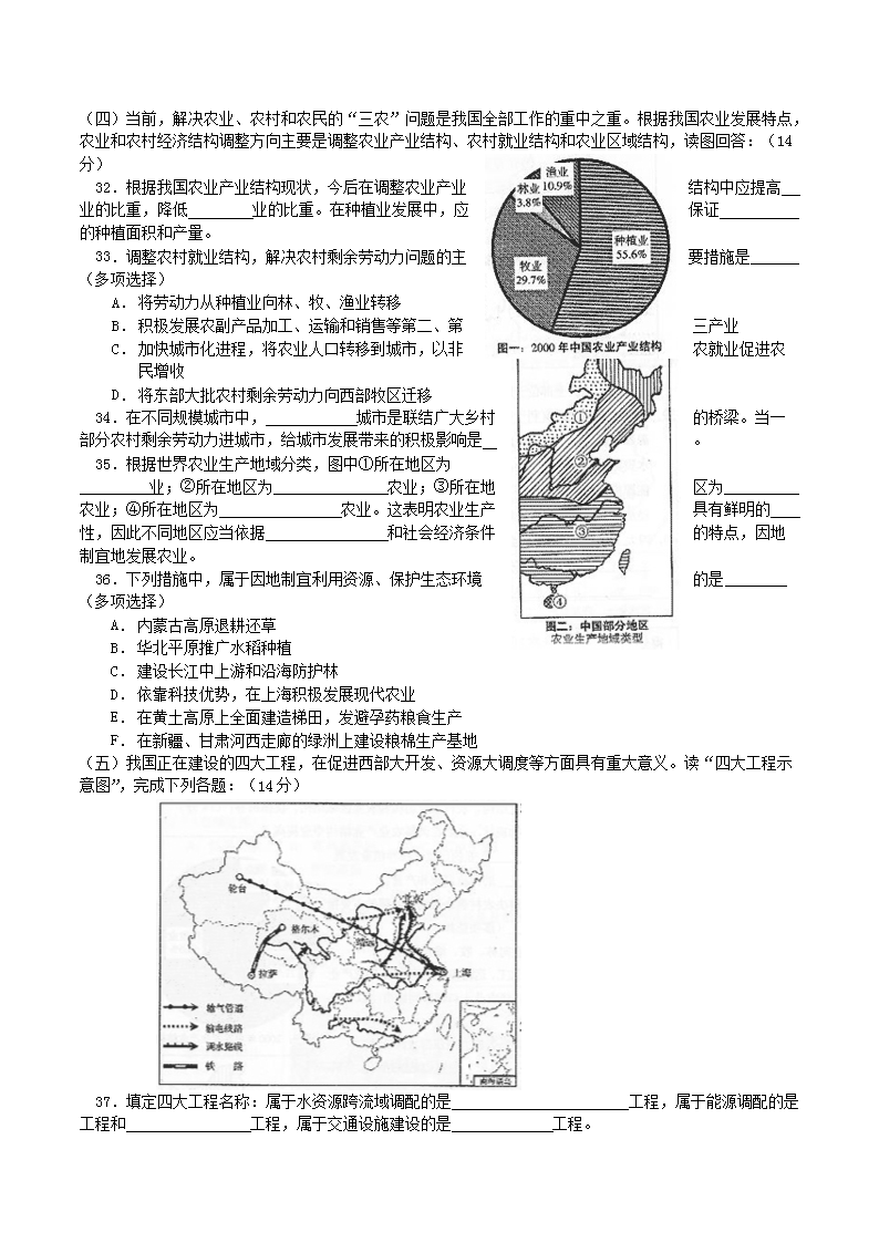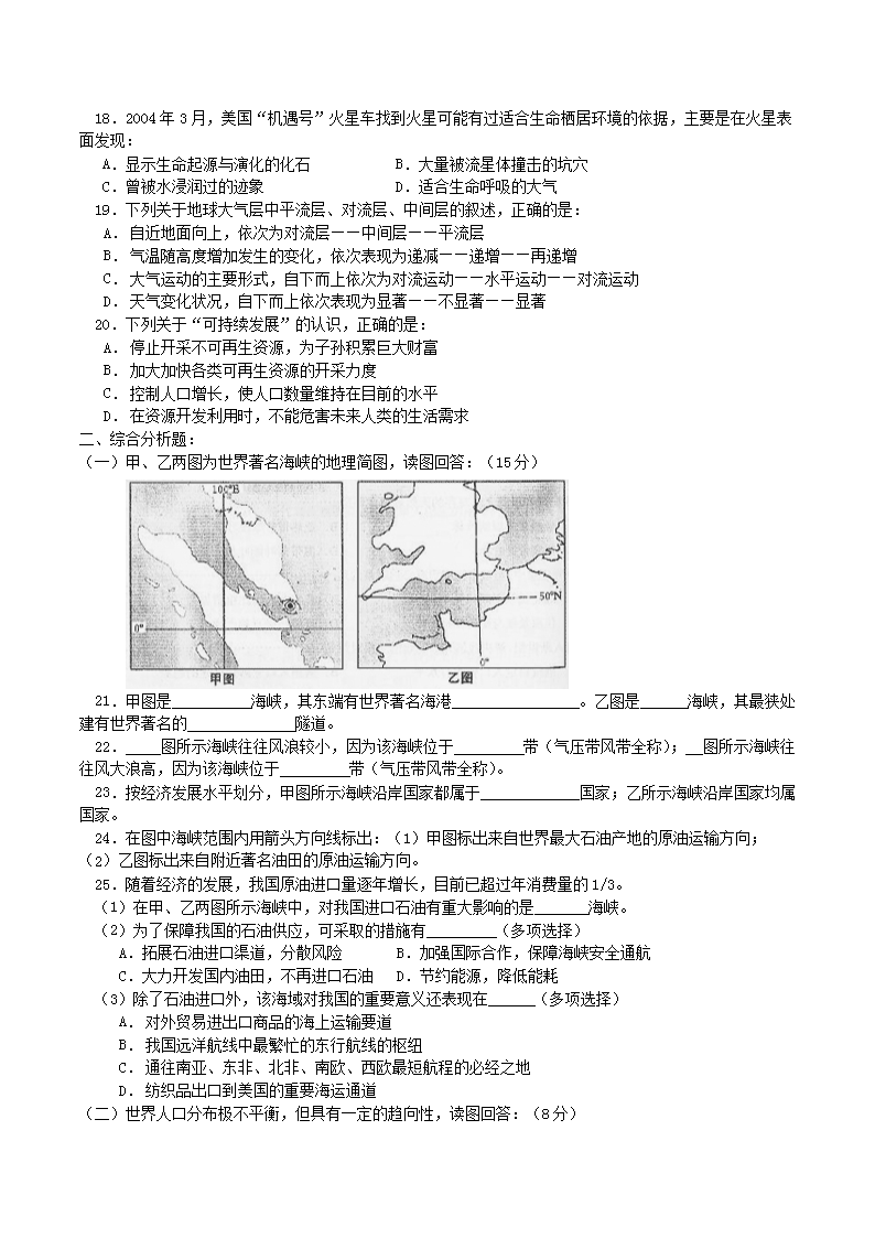 【文檔名稱】 2004年上海高考地理真題及答案(Word版).doc