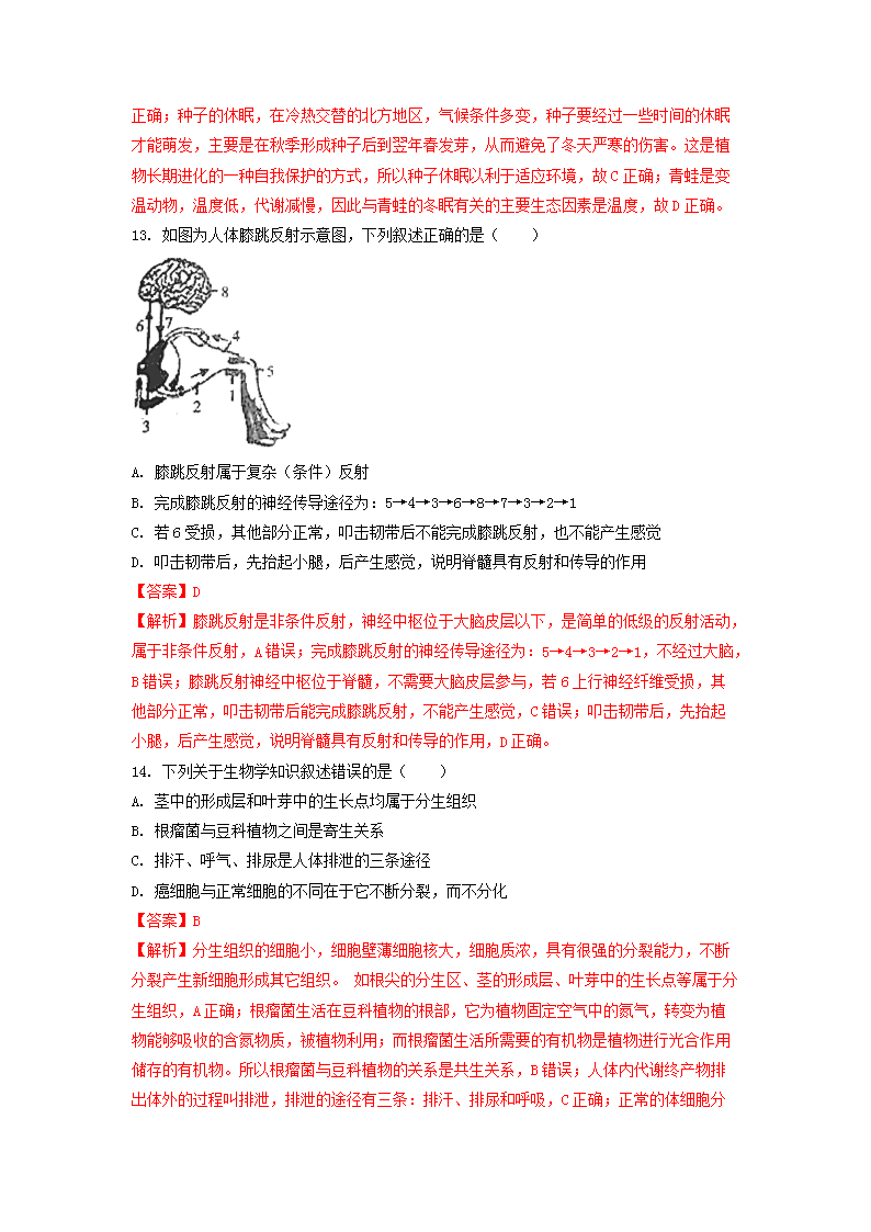 【文檔名稱】 2018年江西吉安中考生物真題及答案(Word版).doc