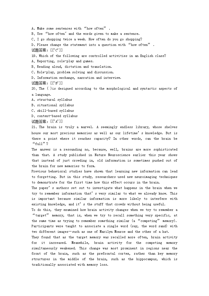 2019上半年重慶教師資格考試初中英語(yǔ)學(xué)科知識(shí)與教學(xué)能力真題及答案(Word版)