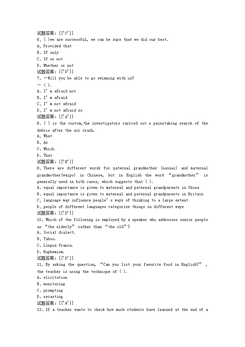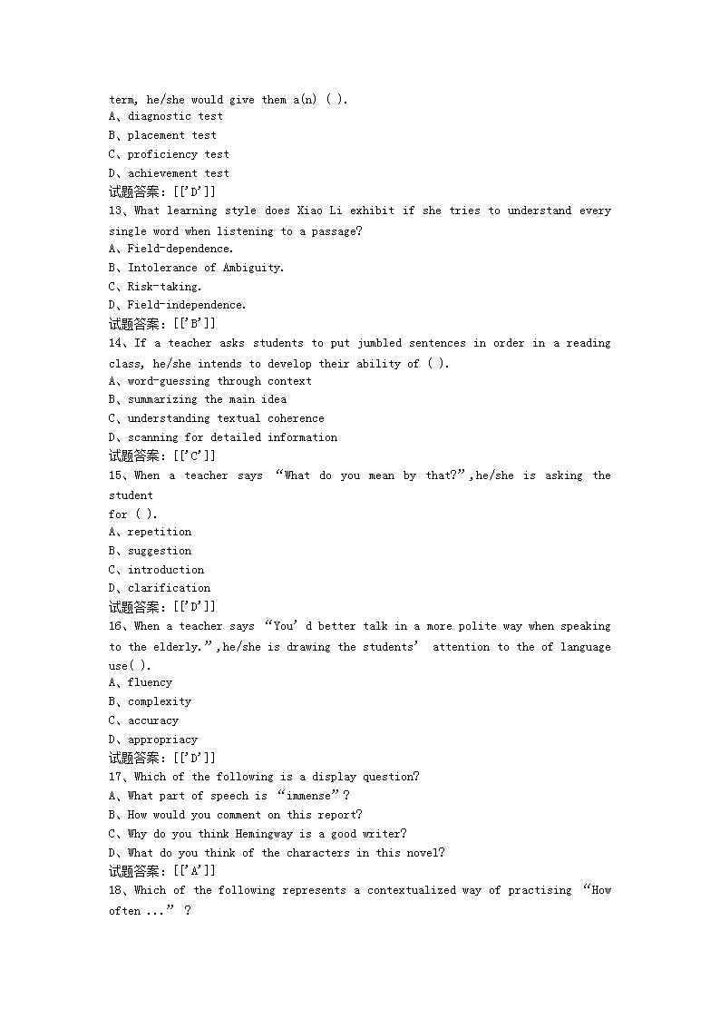 時(shí)間:2021-05-06 16:46:00 來(lái)源:無(wú)憂考網(wǎng) [字體:小 中 大]【文檔名稱】 2019上半年重慶教師資格考試初中英語(yǔ)學(xué)科知識(shí)與教學(xué)能力真題及答案(Word版).doc