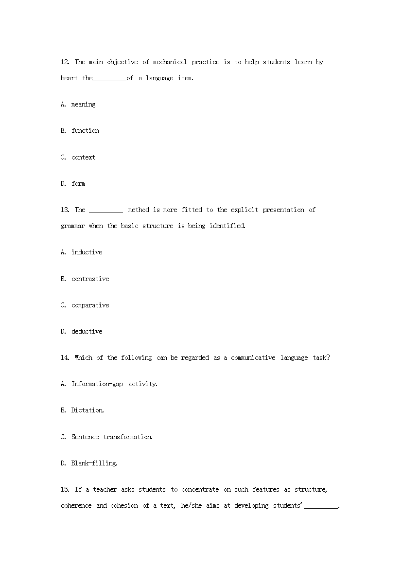時(shí)間:2021-05-06 17:39:00 來(lái)源:無(wú)憂考網(wǎng) [字體:小 中 大]【文檔名稱】 2015上半年四川教師資格初中英語(yǔ)學(xué)科知識(shí)與教學(xué)能力真題及答案(Word版).doc