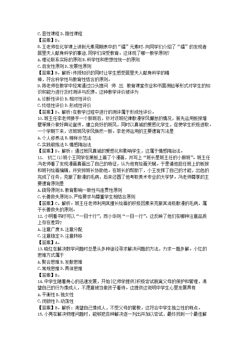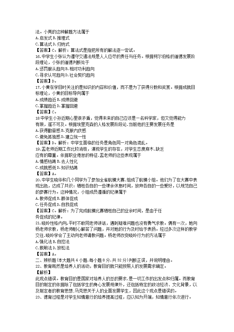- 查看教師資格考試全部真題>>