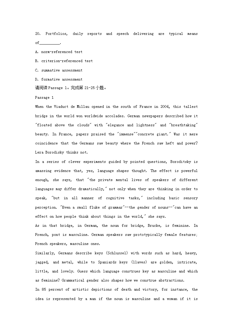 【文檔預覽】 無憂考網(wǎng)整理發(fā)布2016上半年湖南教師資格考試高中英語學科知識與教學能力真題及答案(Word版),前五頁預覽如下: