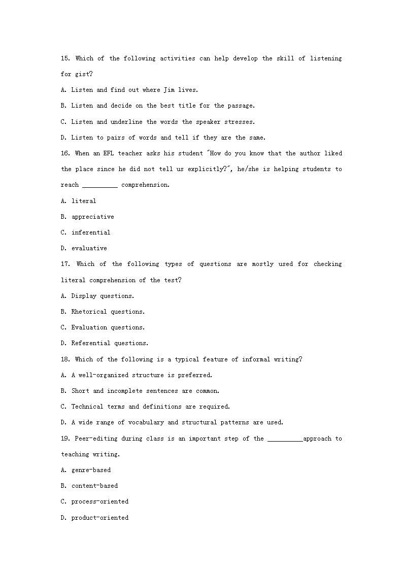 【文檔名稱】 2016上半年湖南教師資格考試高中英語學科知識與教學能力真題及答案(Word版).doc