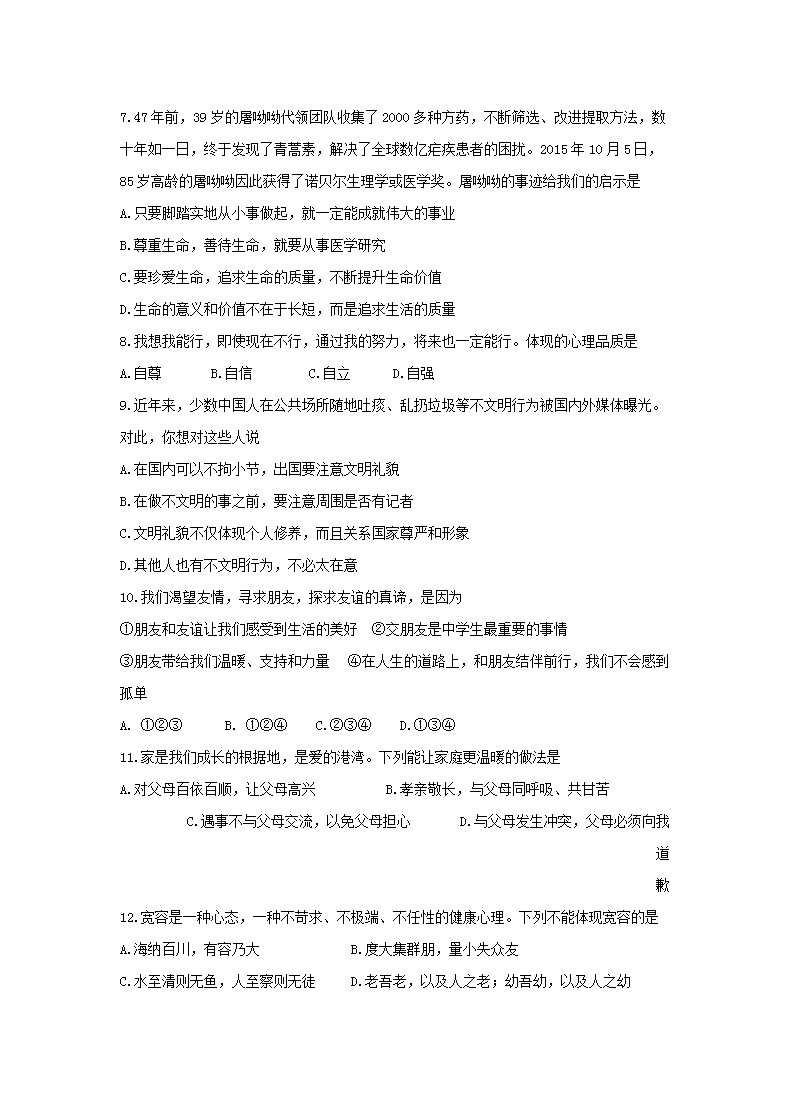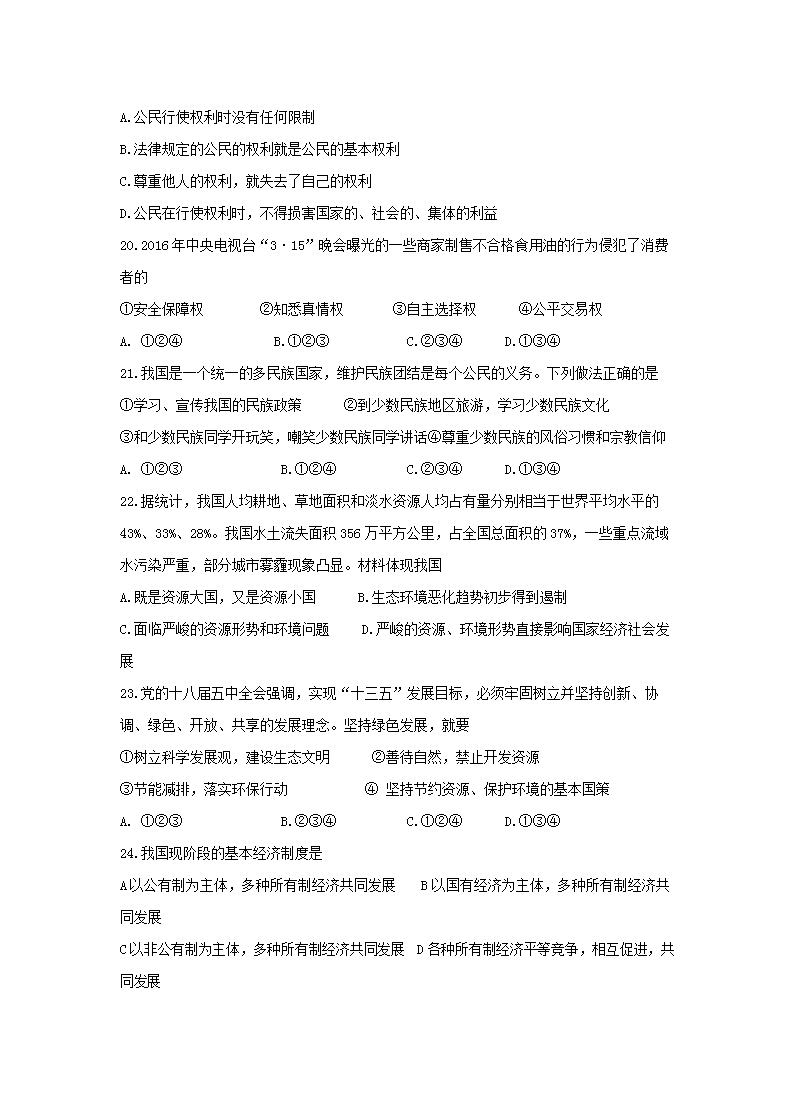 【文檔名稱】 2016年云南楚雄中考道德與法治真題及答案(Word版).doc