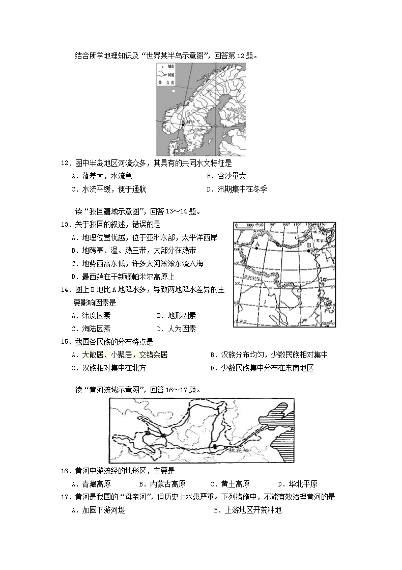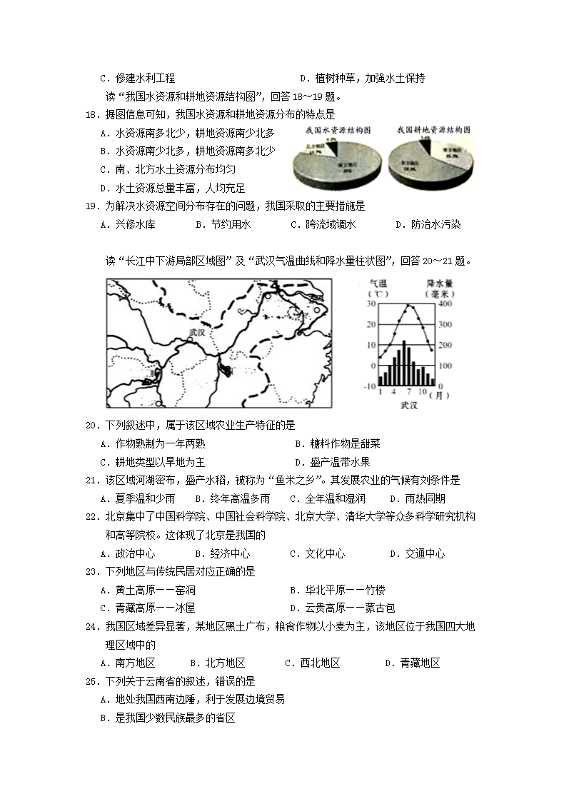 【文檔預(yù)覽】 無憂考網(wǎng)整理發(fā)布2016年云南楚雄中考地理真題及答案(Word版),前五頁預(yù)覽如下: