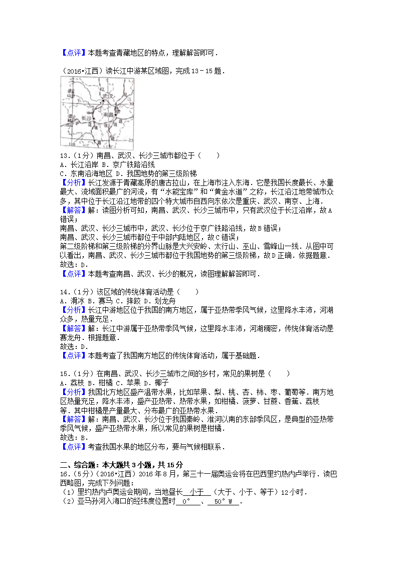 【文檔預(yù)覽】 無憂考網(wǎng)整理發(fā)布2016年江西萍鄉(xiāng)中考地理真題及答案(Word版),前五頁預(yù)覽如下: