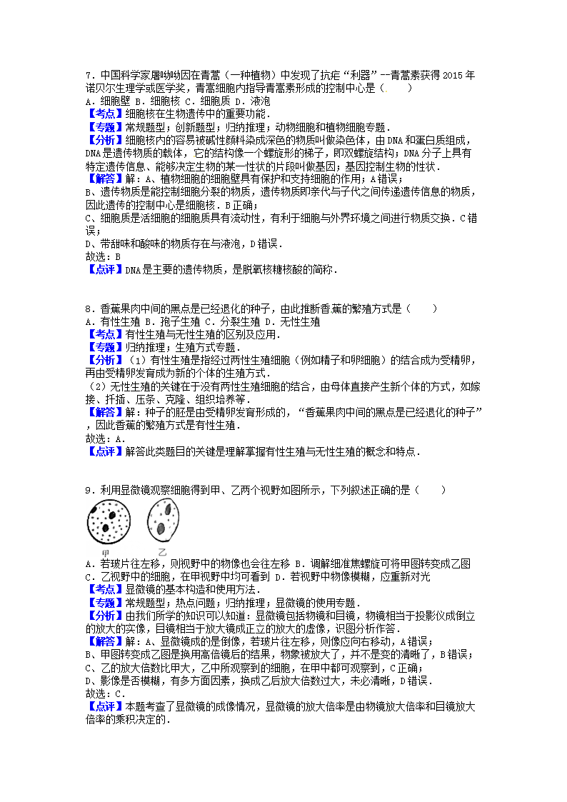【文檔名稱】 2016年江西吉安中考生物真題及答案(Word版).doc