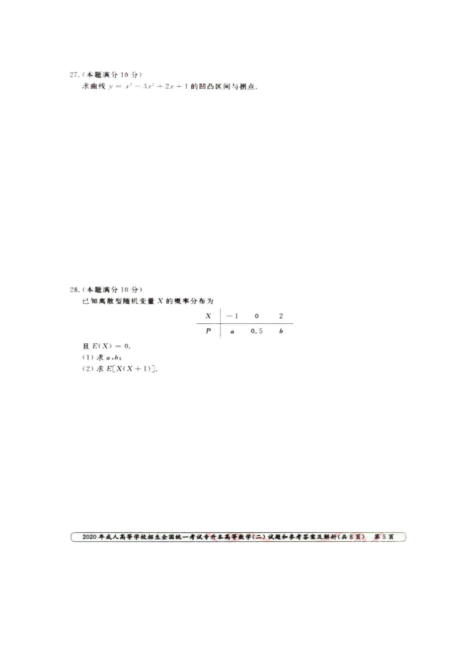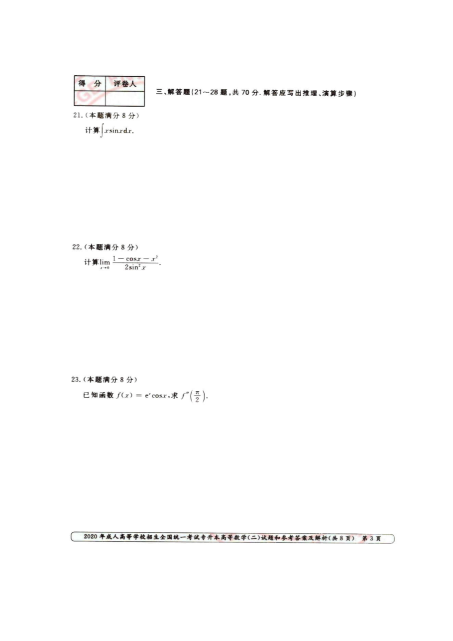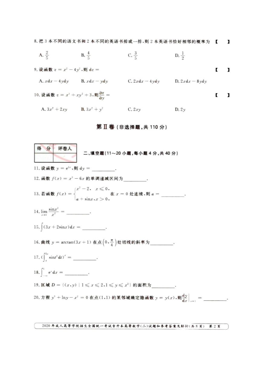 【文檔名稱】 2020年寧夏成人高考專升本高數(shù)(二)真題及答案(圖片版).doc