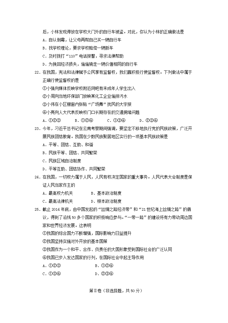 【文檔名稱】 2015年云南楚雄中考道德與法治真題及答案(Word版).doc