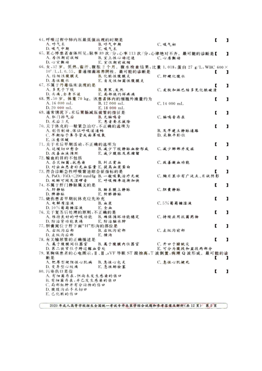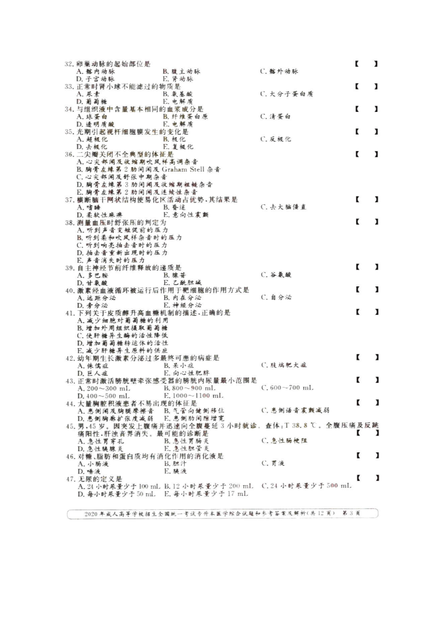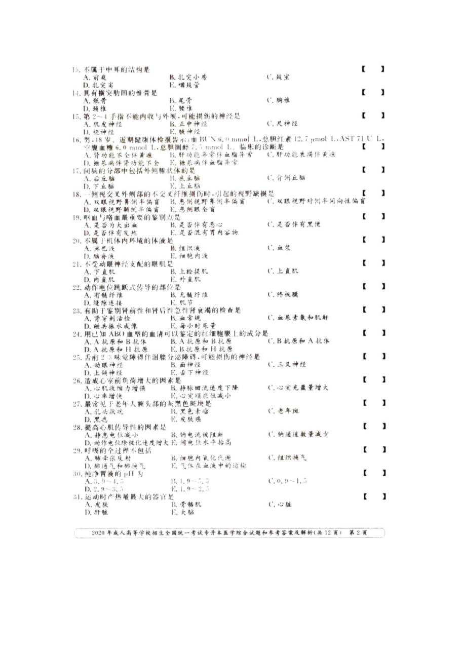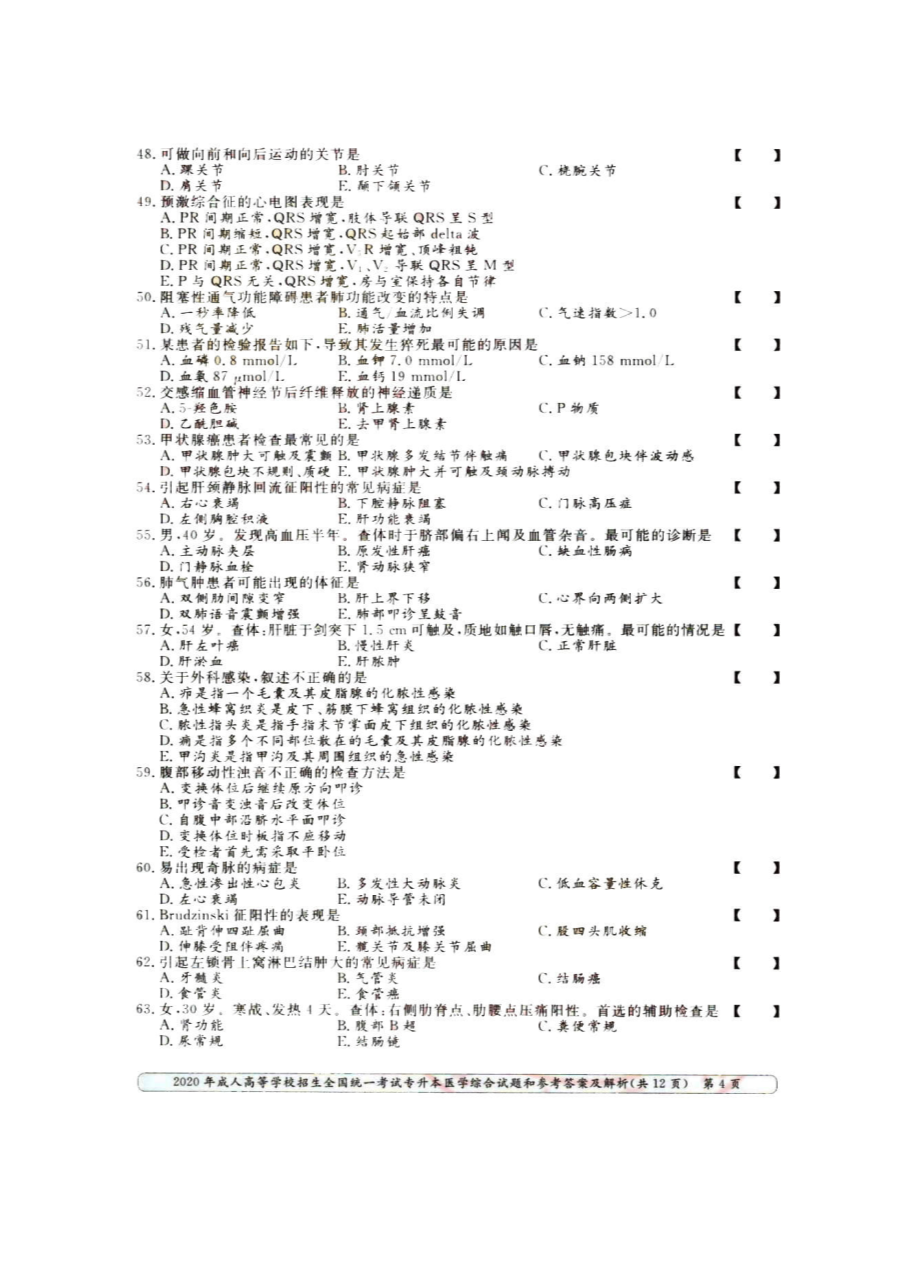 【文檔名稱】 2020年四川成人高考專升本醫(yī)學(xué)綜合真題及答案(圖片版).doc