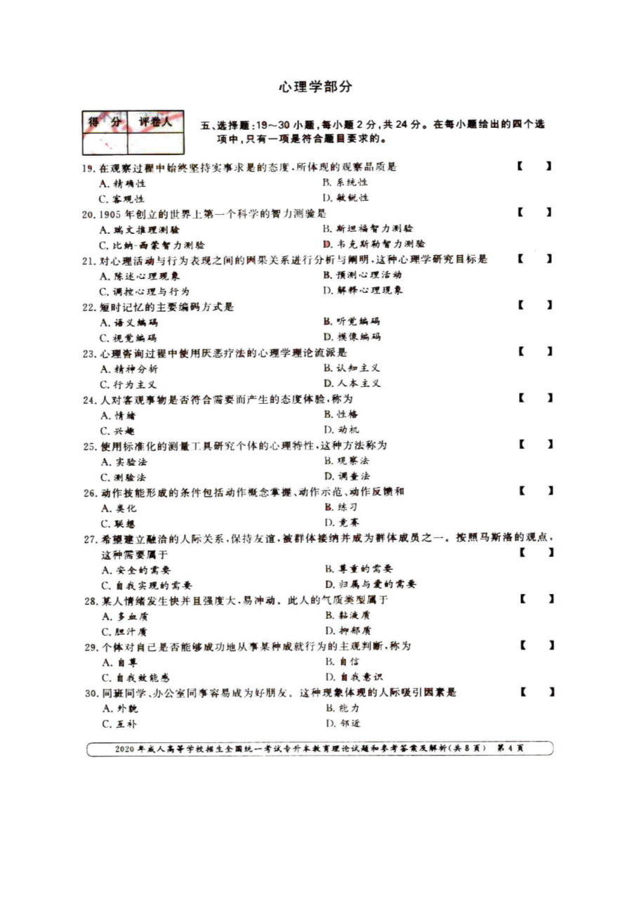 【文檔名稱】 2020年天津成人高考專升本教育理論真題及答案(圖片版).doc