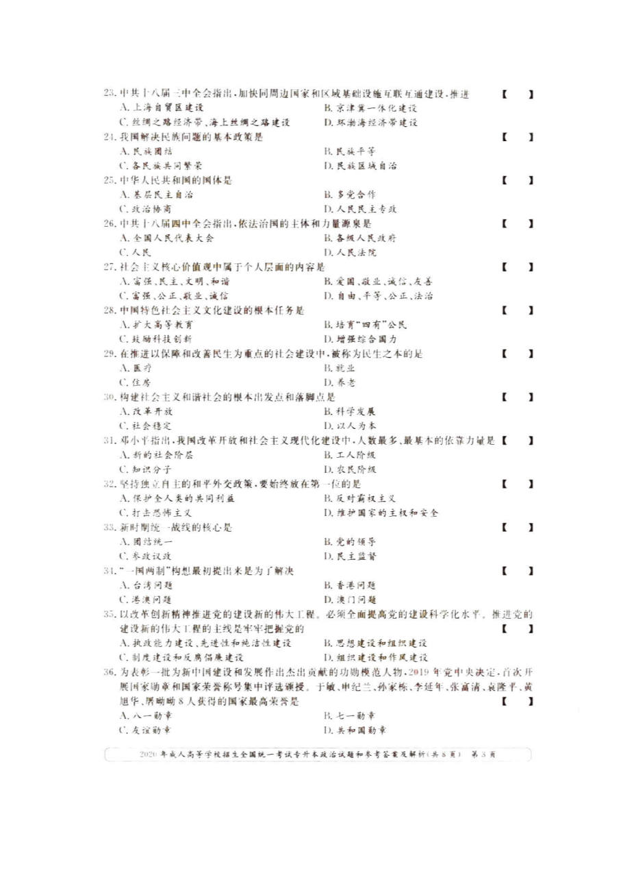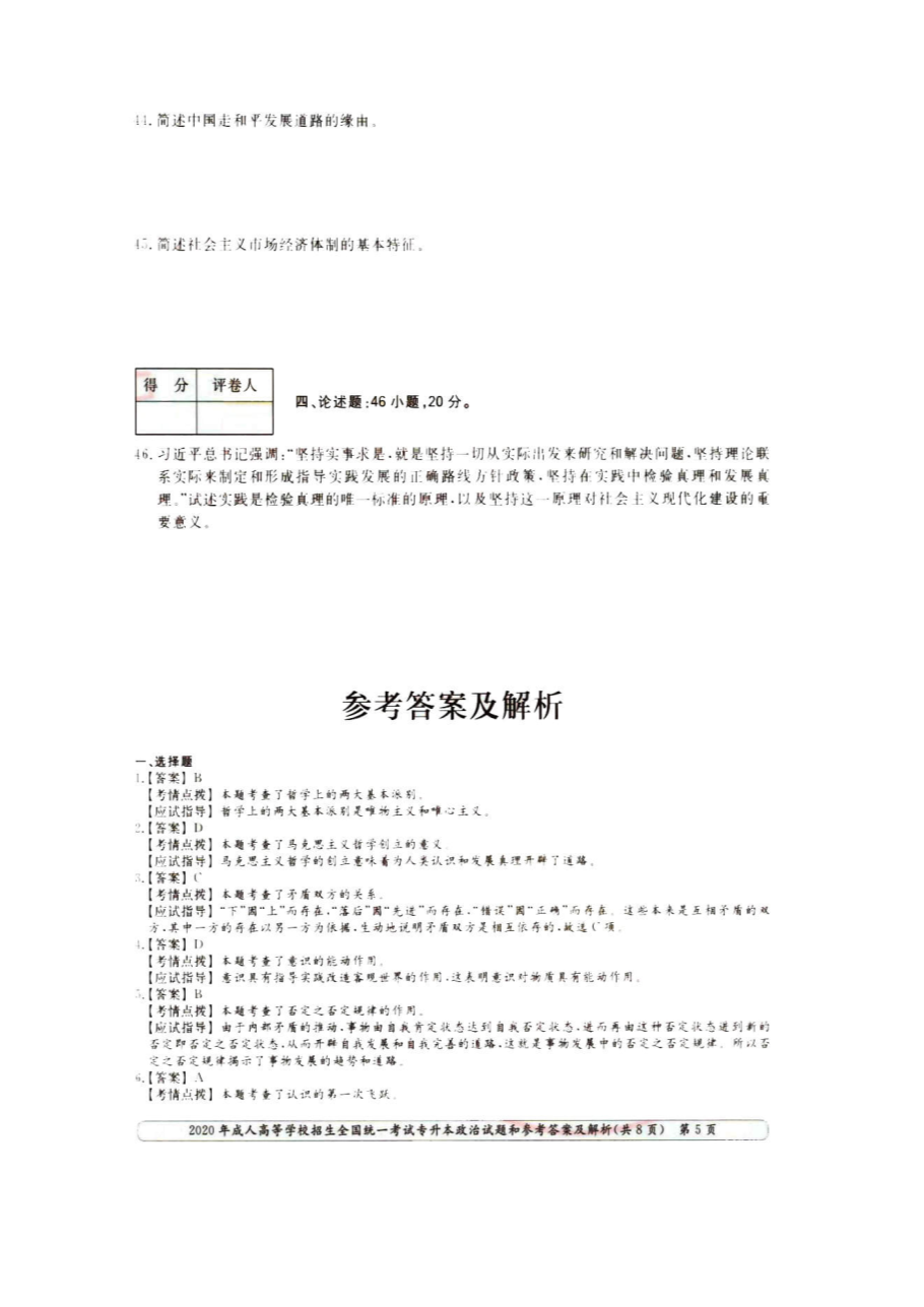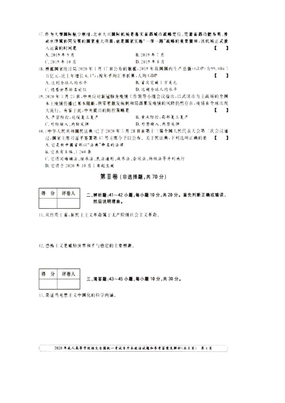 【文檔名稱】 2020年天津成人高考專升本政治真題及答案(圖片版).doc