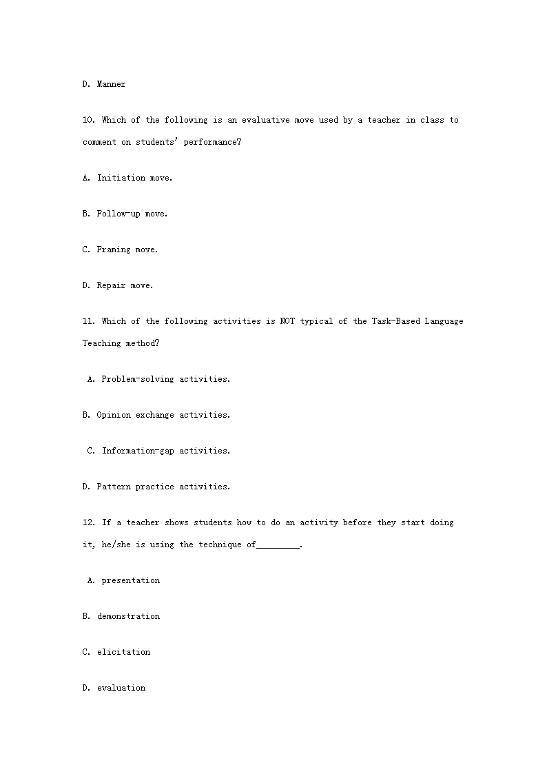 2018上半年廣東教師資格考試初中英語(yǔ)學(xué)科知識(shí)與教學(xué)能力真題及答案(Word版)